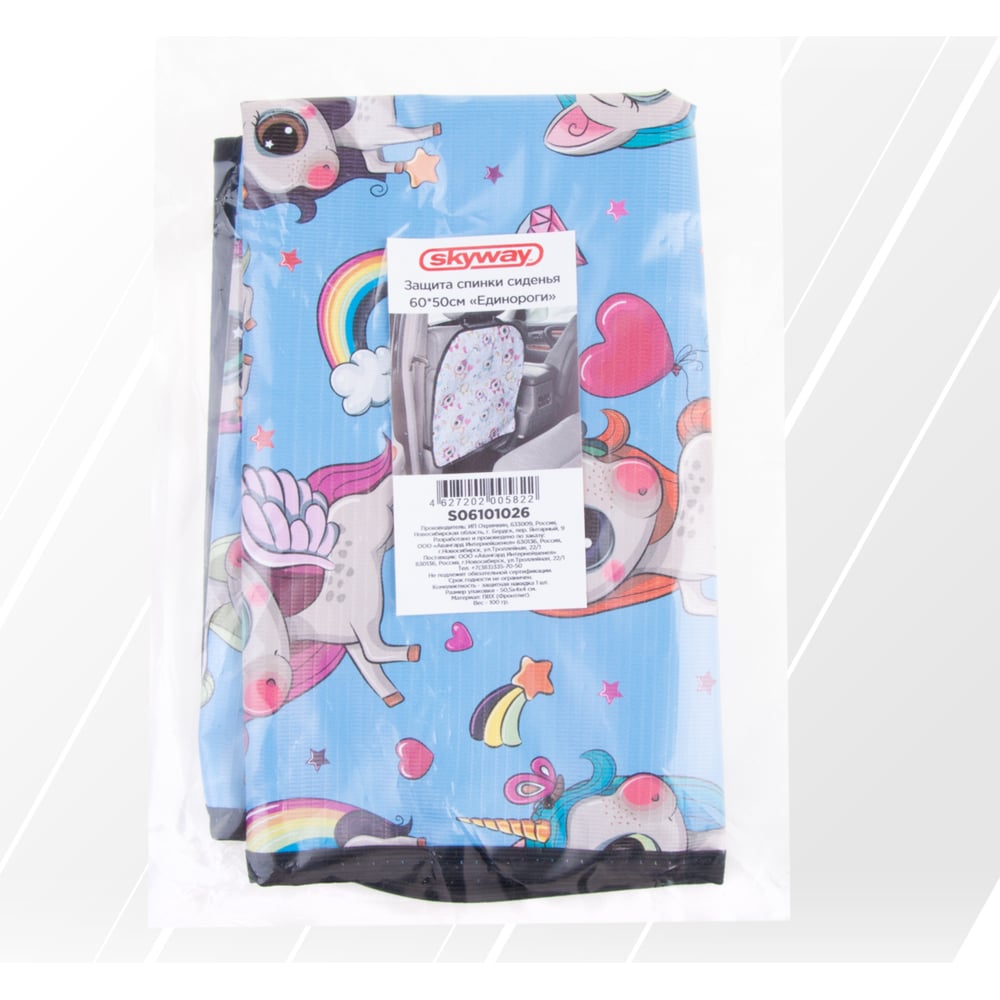 Защита спинки сиденья SKYWAY ПВХ Frontlit Единороги 60х50см S06101026