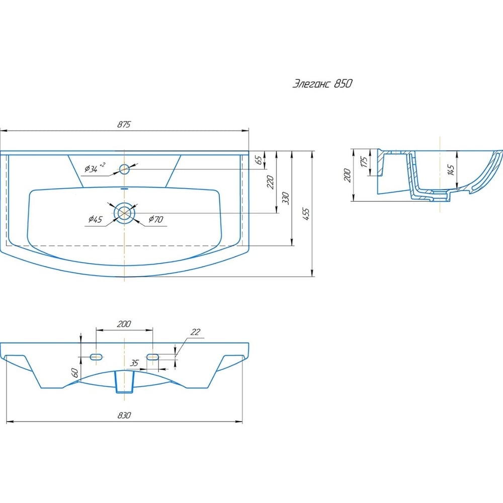 Умывальник Kirovit Элеганс 850 4620008197456 Вн Крв02
