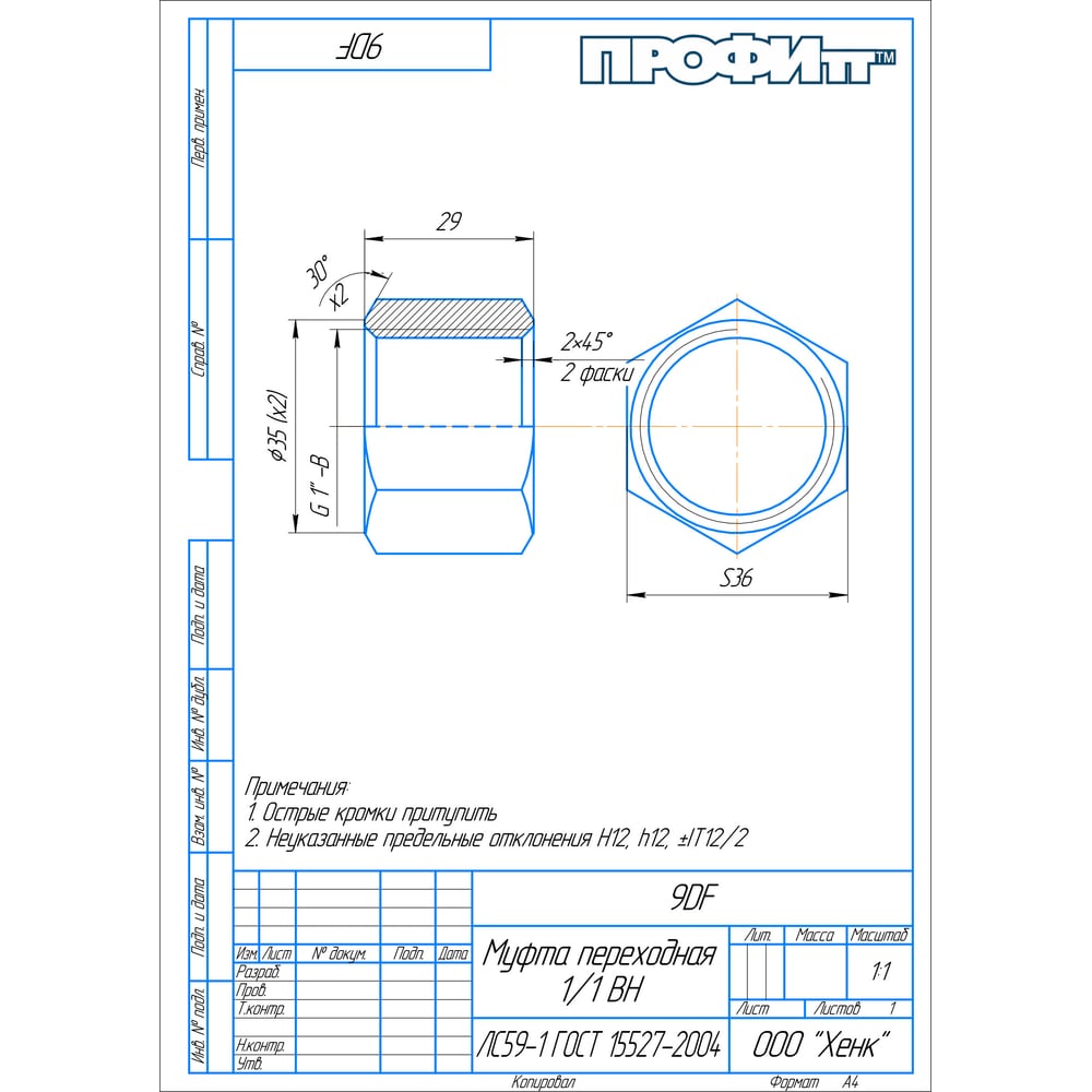 | Размеры резьб | 1-1 дюйм |