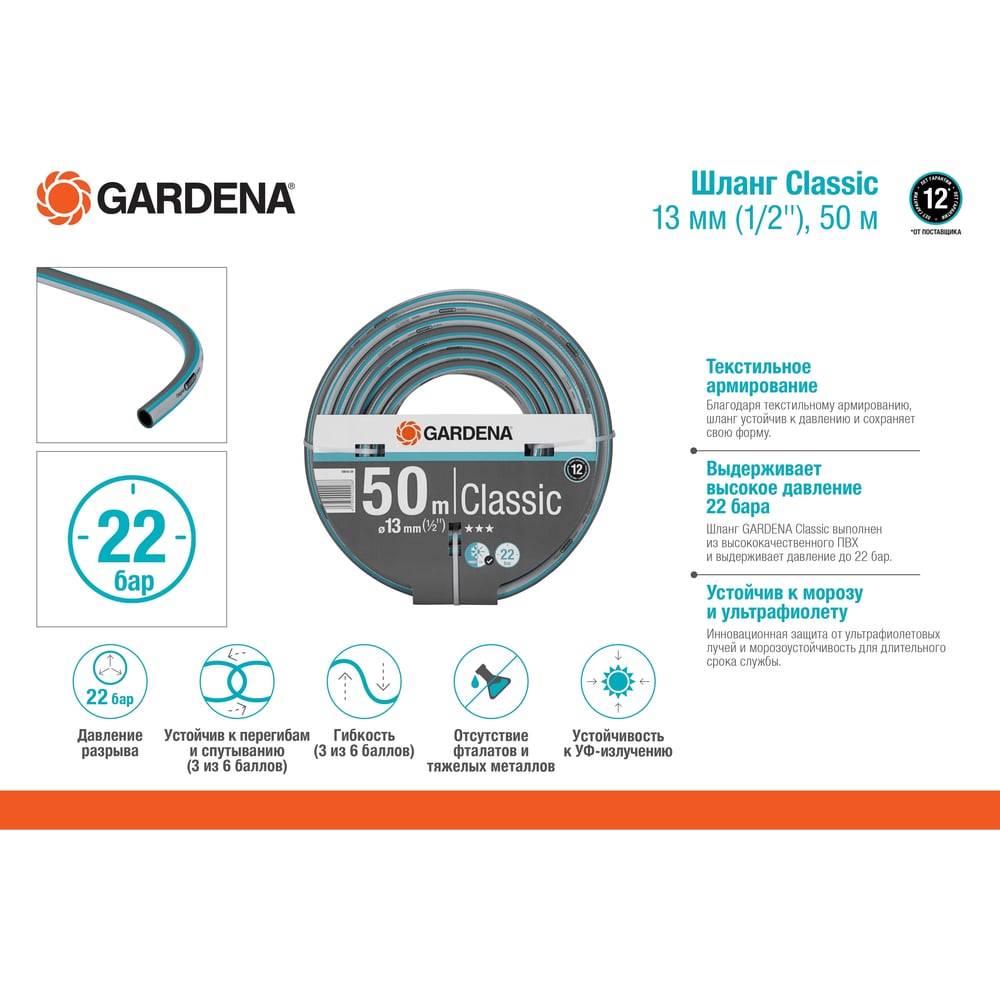 Шланг Classic 1/2", 50м Gardena 18010-20.000.00