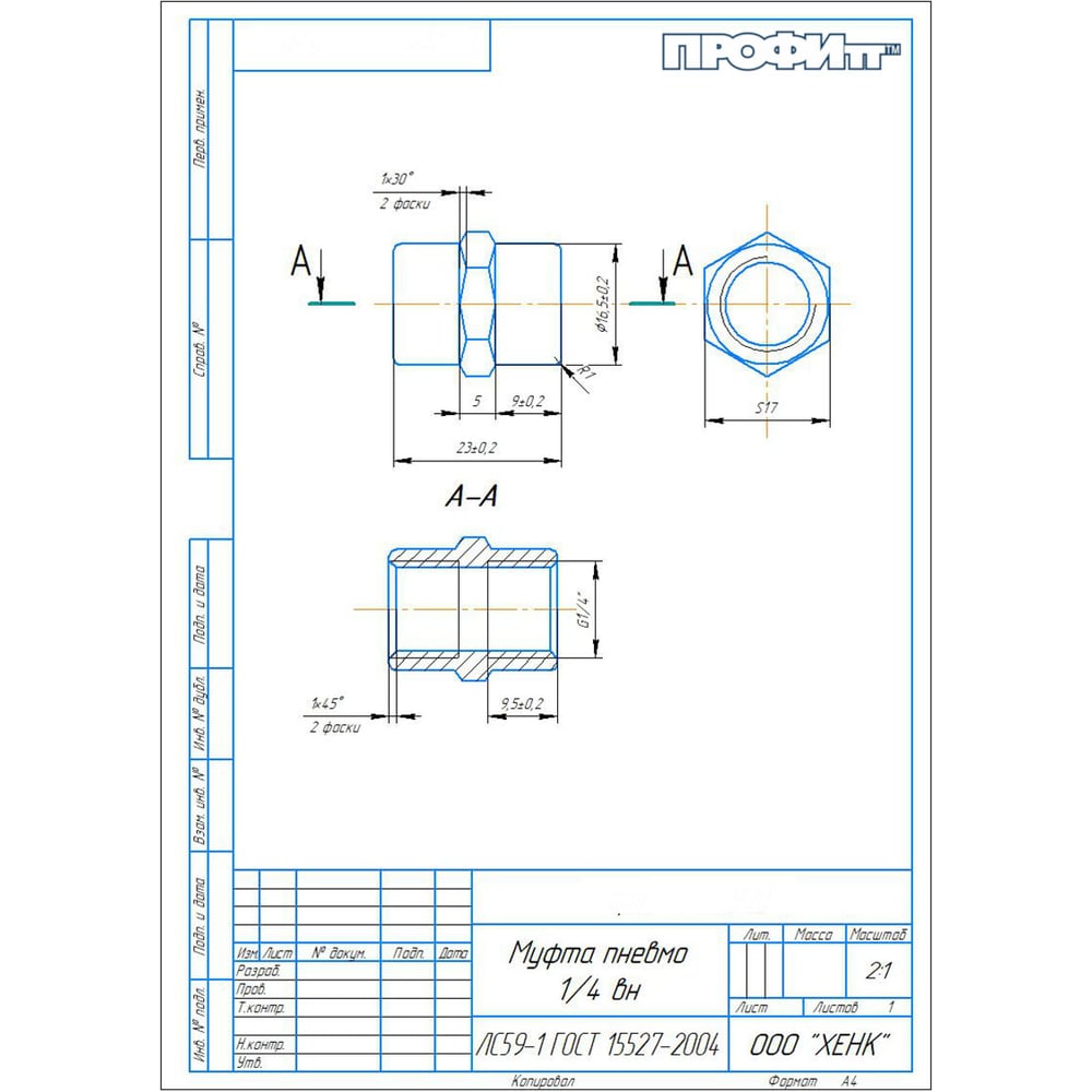 Муфта пневмо (10 шт; 1/4"ВР) Профитт 9275945