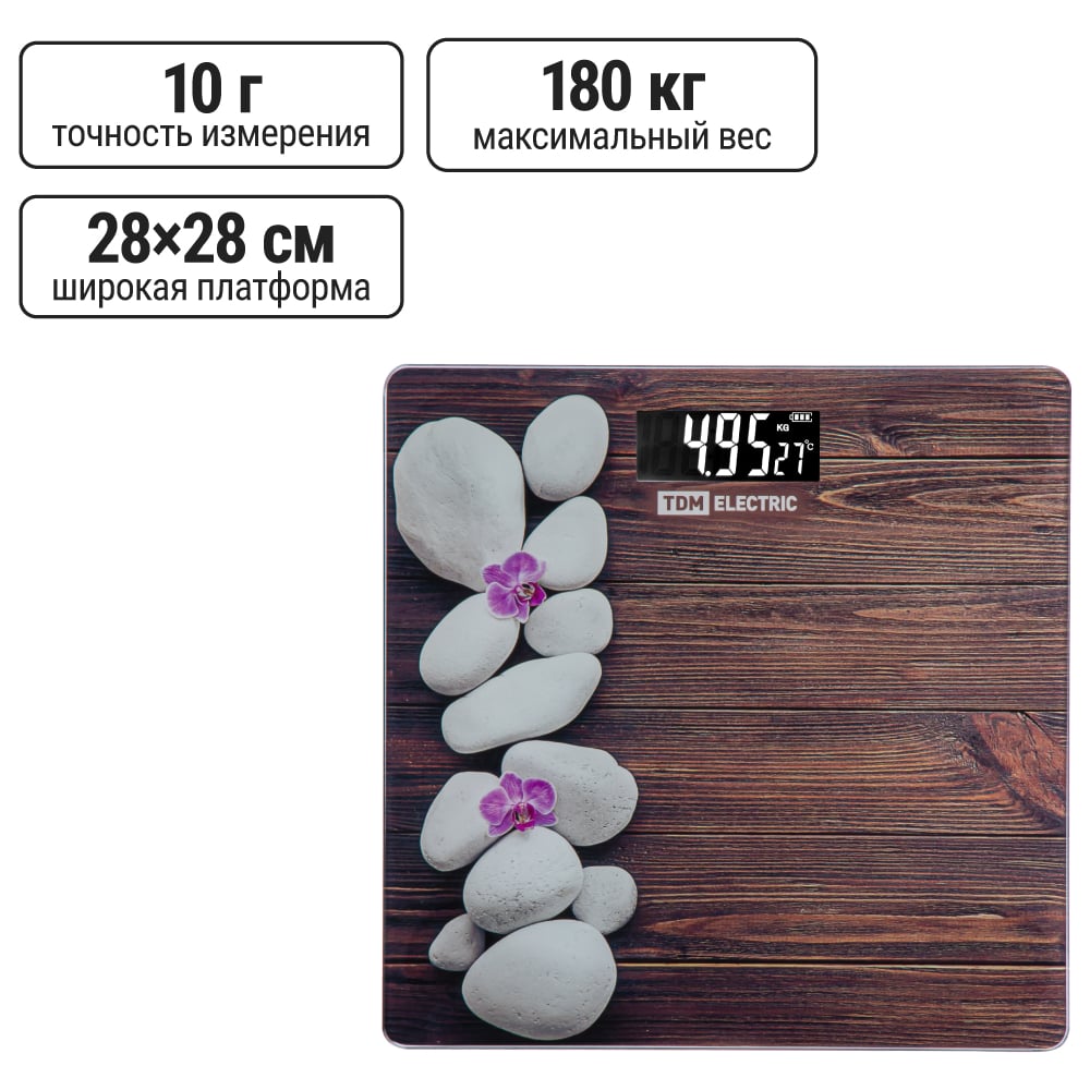 Электронные напольные весы TDM ELECTRIC Спа, стекло, деление 0,01 кг, макс. 180 кг, 28х28 см SQ4012-0004