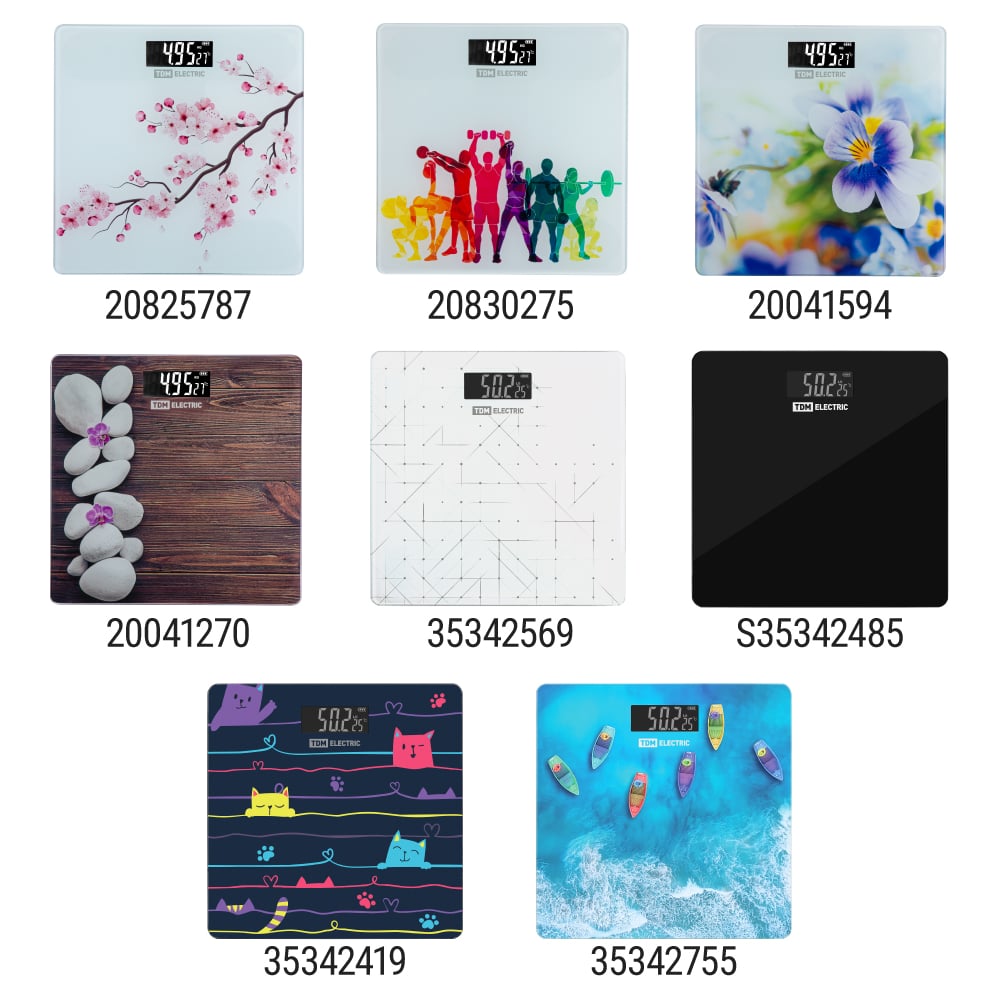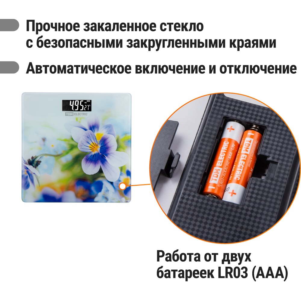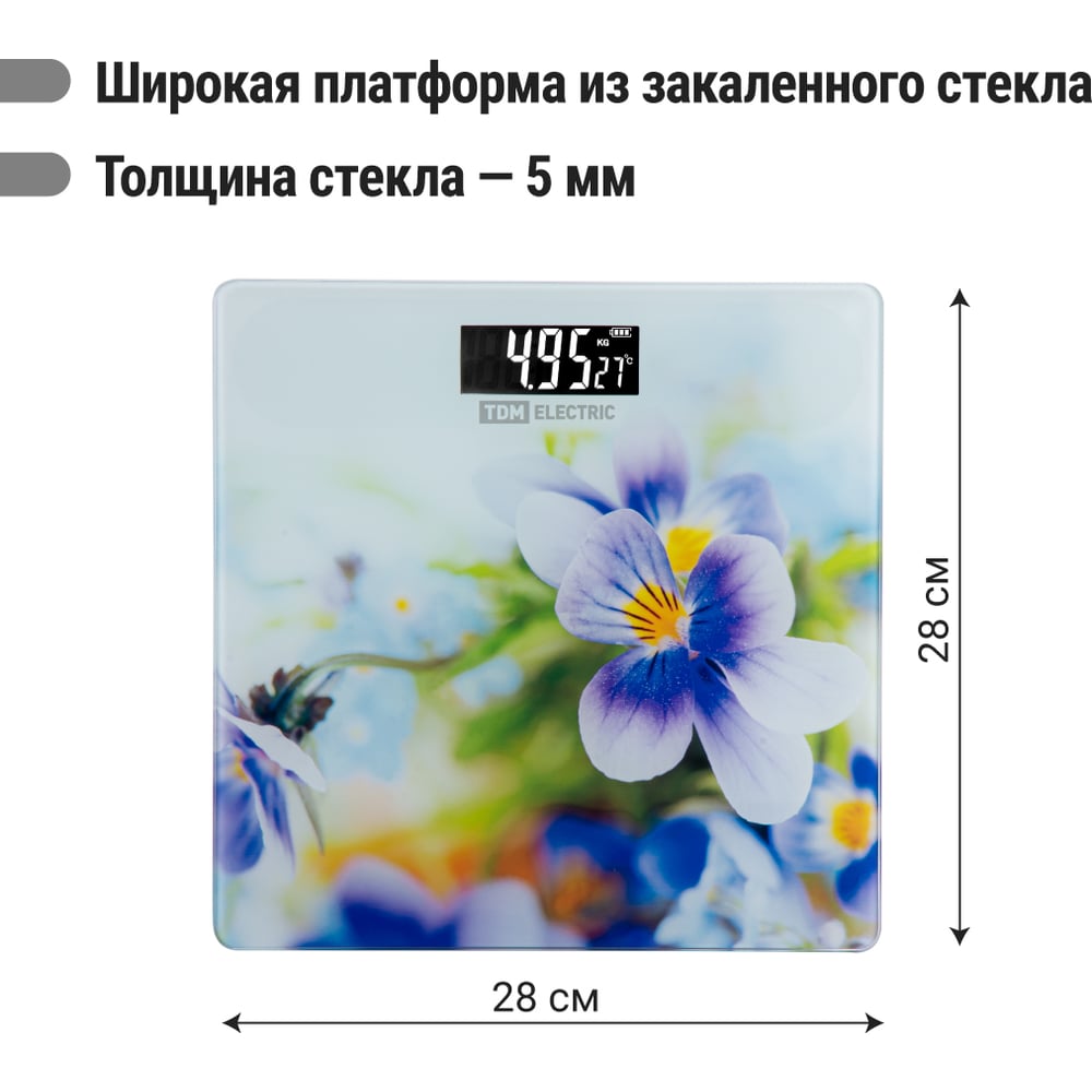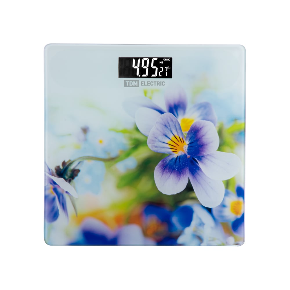 Электронные напольные весы TDM ELECTRIC Фиалки, стекло, деление 0,01 кг, макс. 180 кг, 28х28 см SQ4012-0003