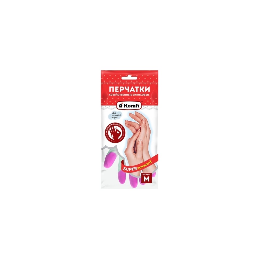 Хозяйственные виниловые перчатки Komfi M, 3 цвета 121863
