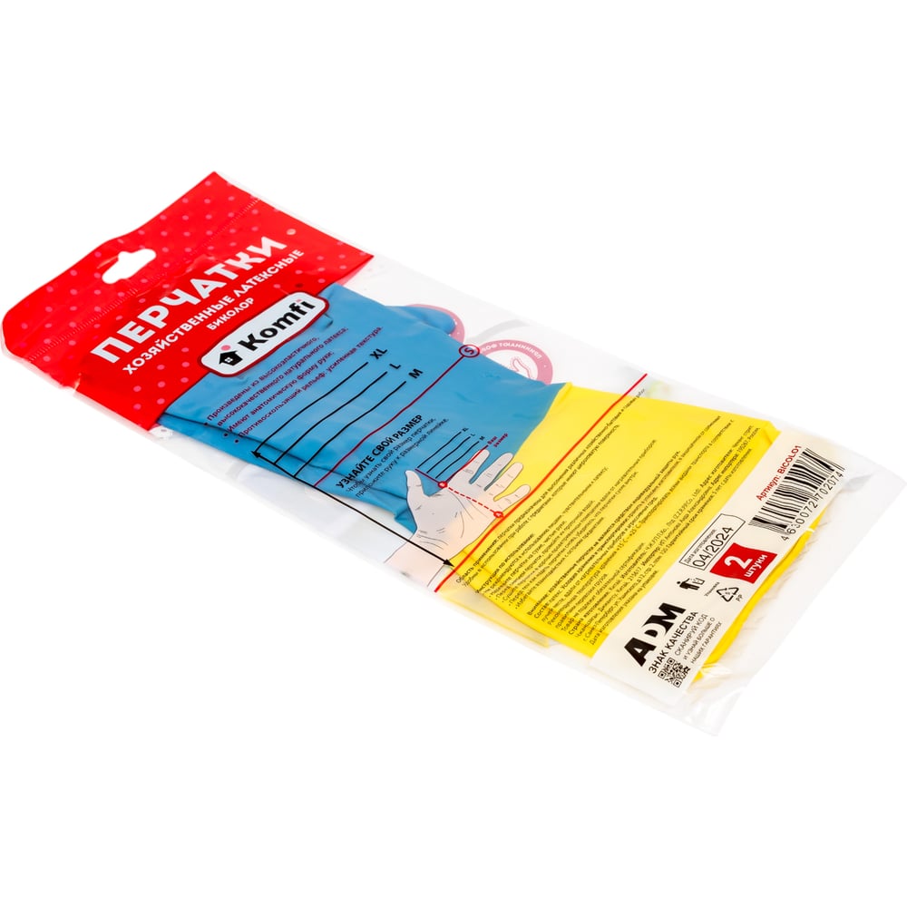 Хозяйственные латексные перчатки Komfi БИКОЛОР 120784
