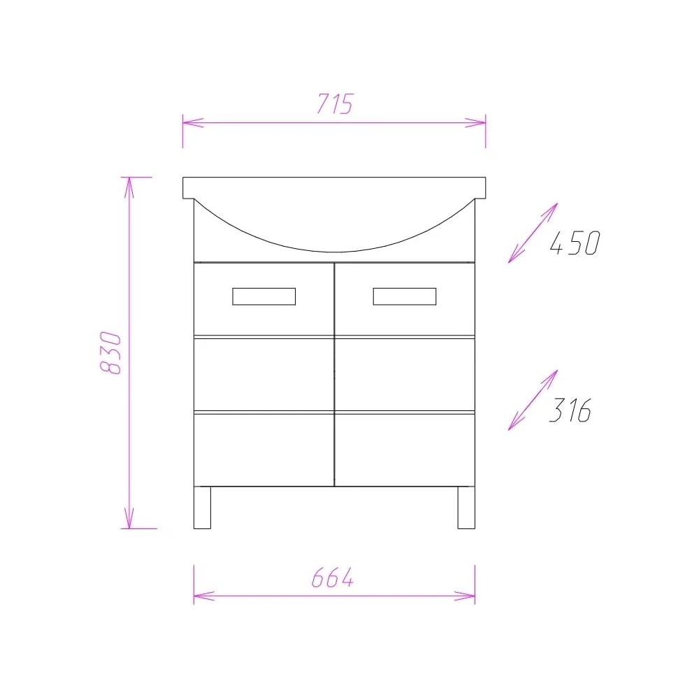 Покрытие ламинированное Вес нетто 30.5 кг Стиль современный Серия Балтика Смеситель в комплекте нет Мыльница нет Бельевая корзина нет Цвет фурнитуры хром Угловая конструкция нет Цвет фасада белый Зеркало нет Материал фасада ЛДСП Количество ящиков нет Донный клапан нет Поверхность глянцевая Расположение крыла без крыла Отверстие для перелива есть Диаметр сливного отверстия 45 мм Ширина раковины 715 мм Глубина раковины 443 мм Высота раковины 194 мм Кол-во отверстий под смеситель 1 Форма раковины прямоугольная Монтаж раковины на тумбу Цвет раковины белый Материал раковины керамика Количество чаш 1 шт Расположение смесителя посередине Сифон в комплекте нет Система хранения с полками Для людей с ограниченными возможностями нет Количество створок двери 2 шт Высота тумбы 680 мм Ширина тумбы 664 мм Глубина тумбы 316 мм Монтаж тумбы напольный Полотенцедержатель нет Под стиральную машину нет Размер отверстия под смеситель 35 мм Цвет аксессуаров хром Угловые вентили в комплекте нет