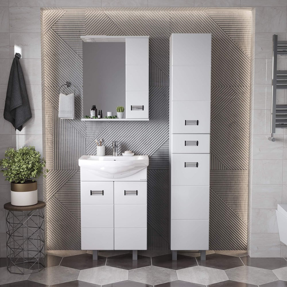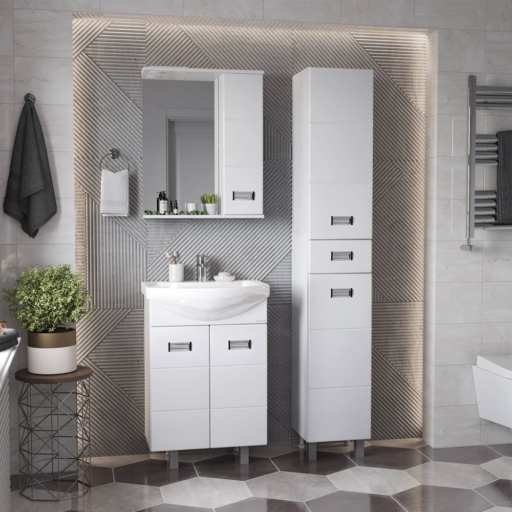Покрытие ламинированное Вес нетто 26.7 кг Стиль современный Серия Балтика Мыльница нет Бельевая корзина нет Цвет фурнитуры хром Угловая конструкция нет Цвет фасада белый глянец Зеркало нет Материал фасада ЛДСП Количество ящиков нет Донный клапан нет Поверхность глянцевая Расположение крыла без крыла Отверстие для перелива есть Диаметр сливного отверстия 45 мм Ширина раковины 610 мм Глубина раковины 445 мм Высота раковины 184 мм Кол-во отверстий под смеситель 1 Форма раковины прямоугольная Монтаж раковины на тумбу Цвет раковины белый Материал раковины керамика Количество чаш 1 шт Расположение смесителя посередине Система хранения с полками Для людей с ограниченными возможностями нет Количество створок двери 2 шт Высота тумбы 680 мм Ширина тумбы 560 мм Глубина тумбы 311 мм Монтаж тумбы напольный Полотенцедержатель нет Под стиральную машину нет Размер отверстия под смеситель 35 мм