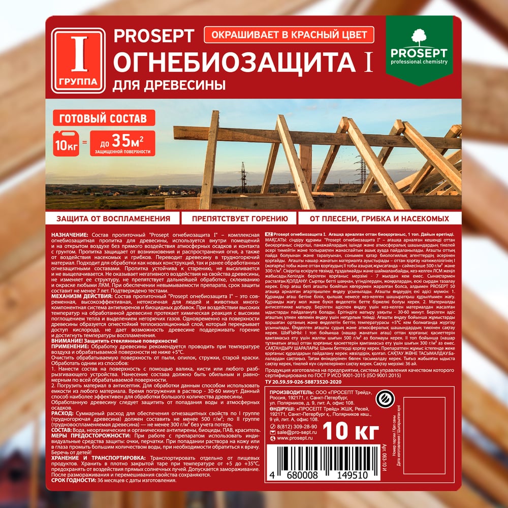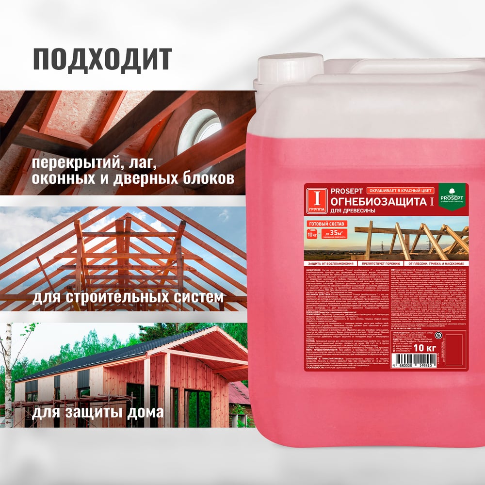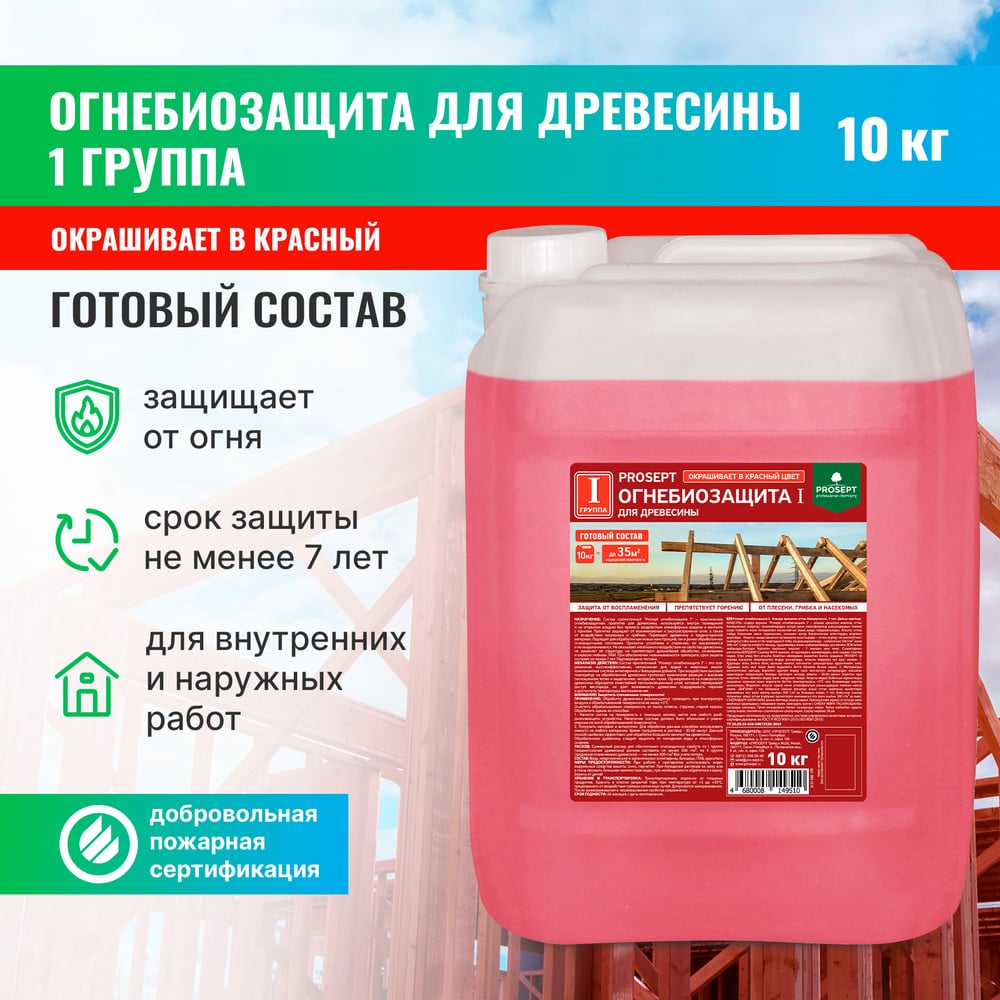 Огнебиозащита для древесины PROSEPT I группа, красный, готовый состав, 10 кг 063-10 И