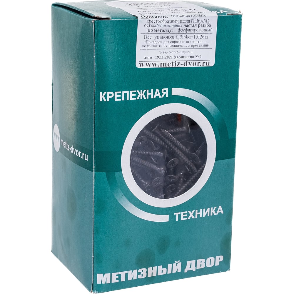 Саморез по металлу для ГКЛ Метизный двор 3,5x41, частая резьба, оксидированный, 500 шт. 4607159062222