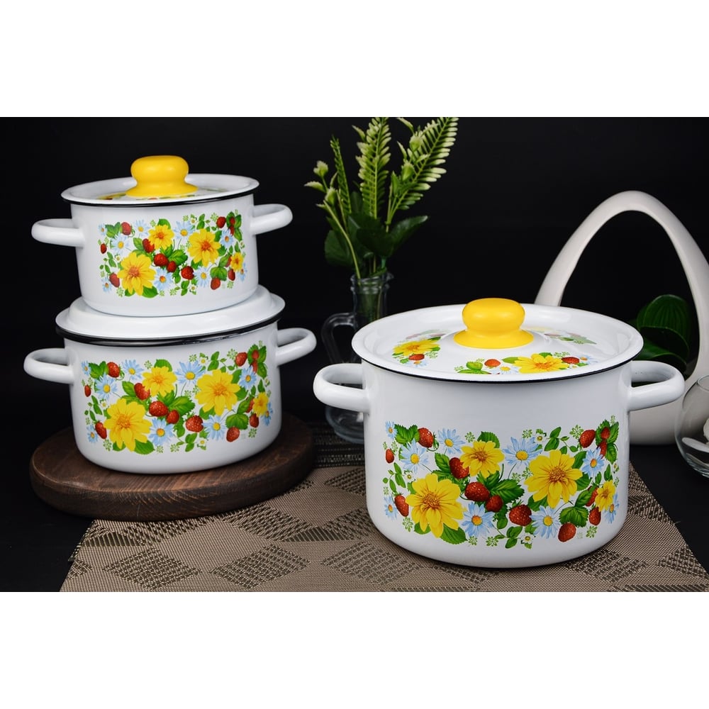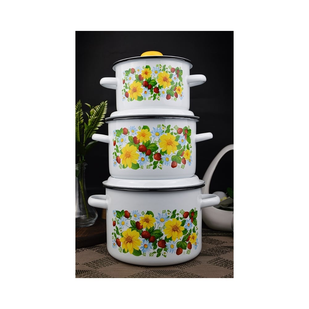 Эмалированный набор посуды СТАЛЬЭМАЛЬ 144 Земляника 3 предмета, белоснежная ХП3790