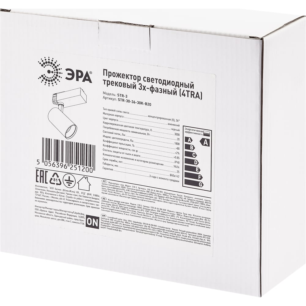 Трековый трехфазный светильник ЭРА SТR303630KB20 узкий луч 3000K черный Б0049778