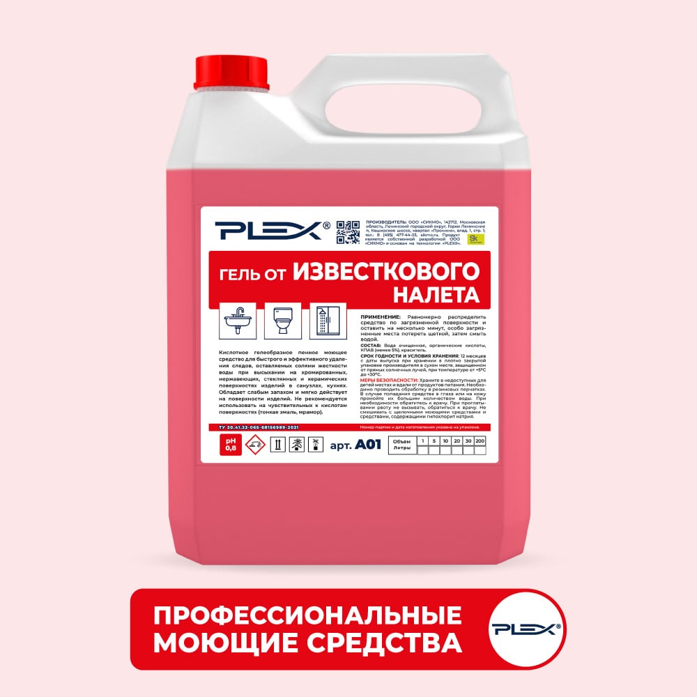 Гель для удаления известкового налета PLEX для кухни и ванны, 5 л УТ000006425