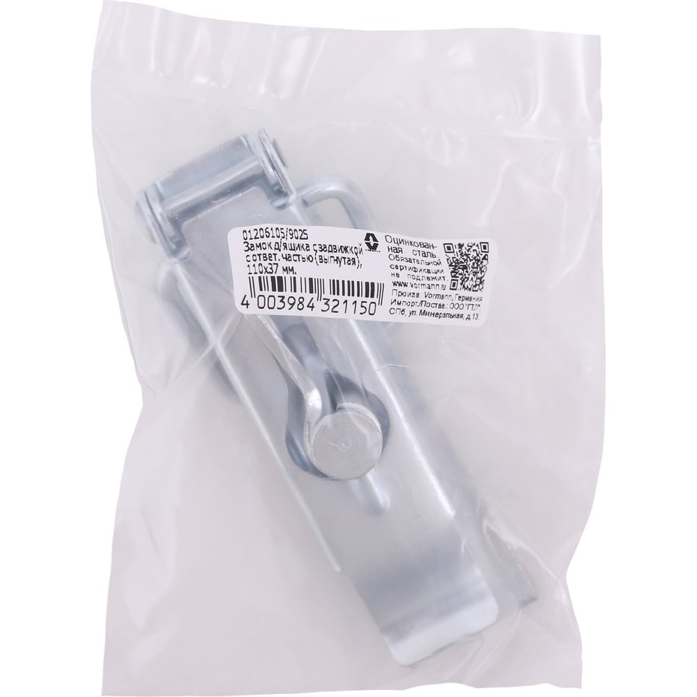 Замок для ящика VORMANN с задвижкой, с выгнутой ответной частью 110х37 мм, оцинкованный 01206105/9025