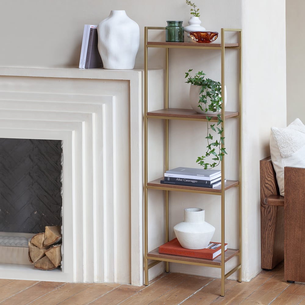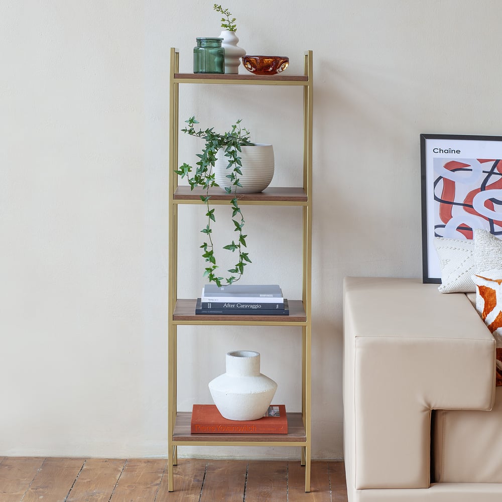 Стеллаж GreenWeen ALTO золотой, ЛДСП Орех 450x300x1450 GW-ALTO-450G-LD