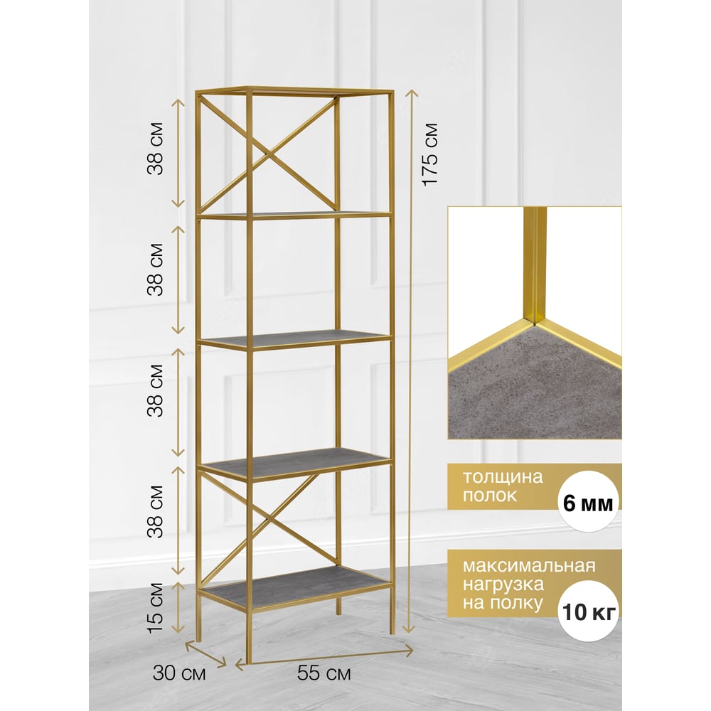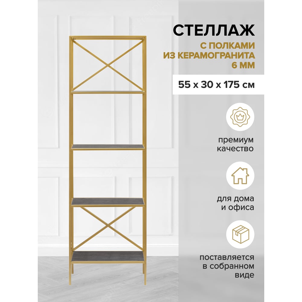 Стеллаж GreenWeen KARIN золотой/керамика антрацит, 550x300x1750 GW-KARIN-G-KA