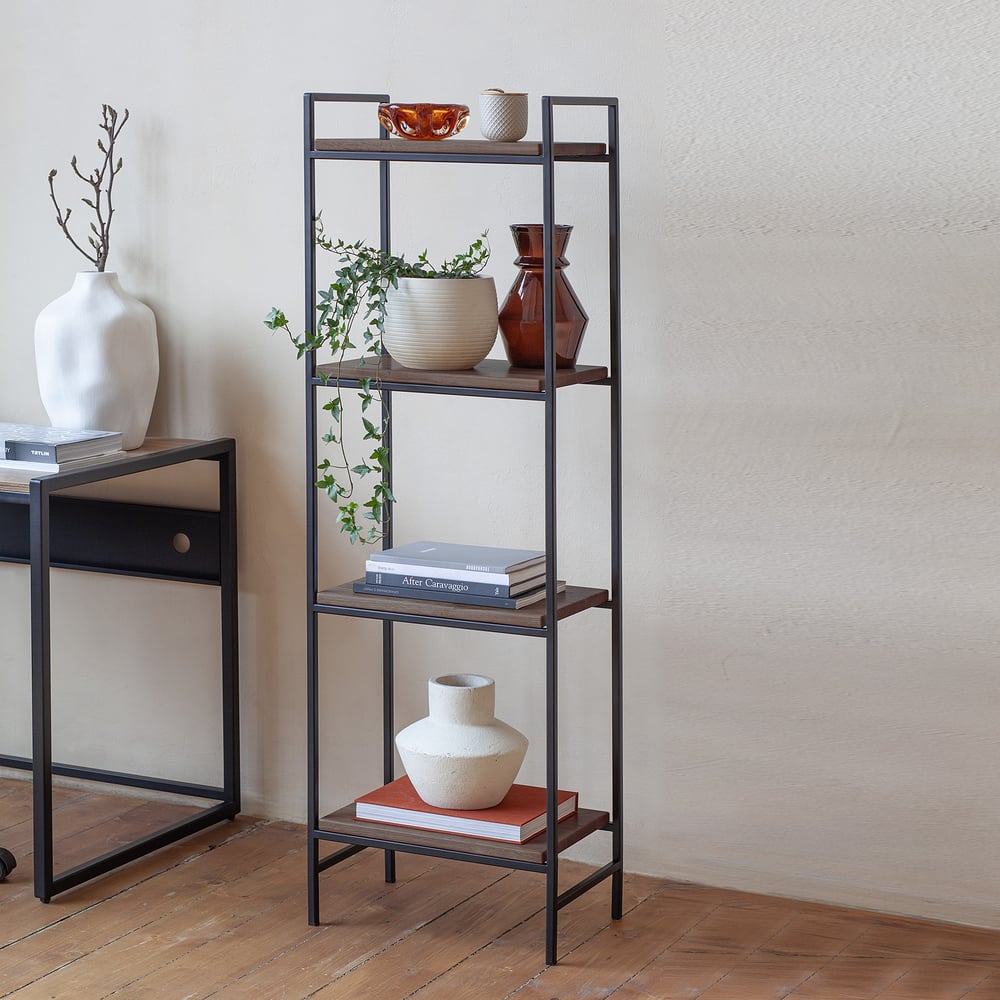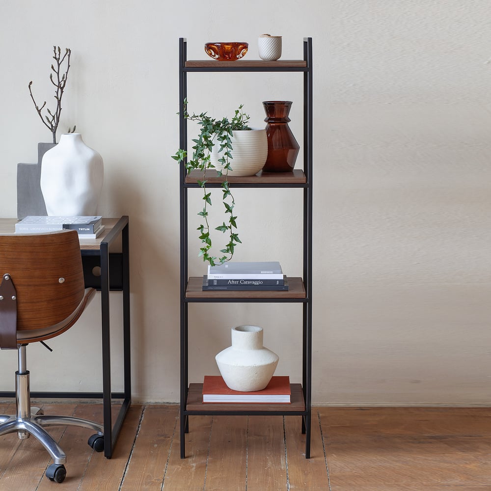 Стеллаж GreenWeen ALTO черный, ЛДСП Орех 450x300x1450 GW-ALTO-450B-LD