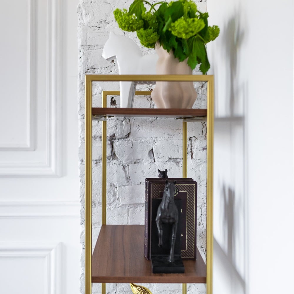 Стеллаж GreenWeen ALTO золотой, ЛДСП Орех 550x300x1450 GW-ALTO-550G-LD