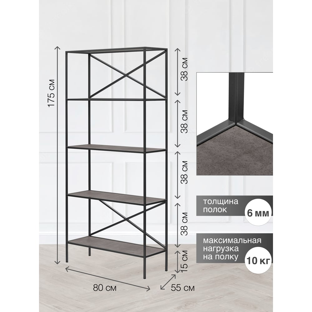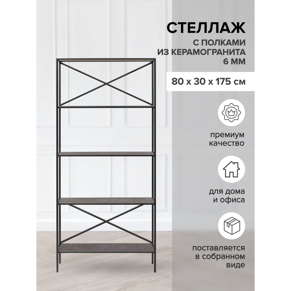 Стеллаж GreenWeen KARIN-800 черный, керамика антрацит 1750x800x300 GW-KARIN-800-B-KA