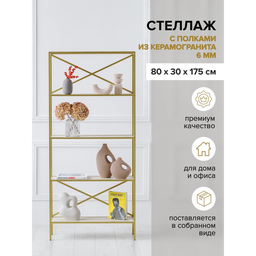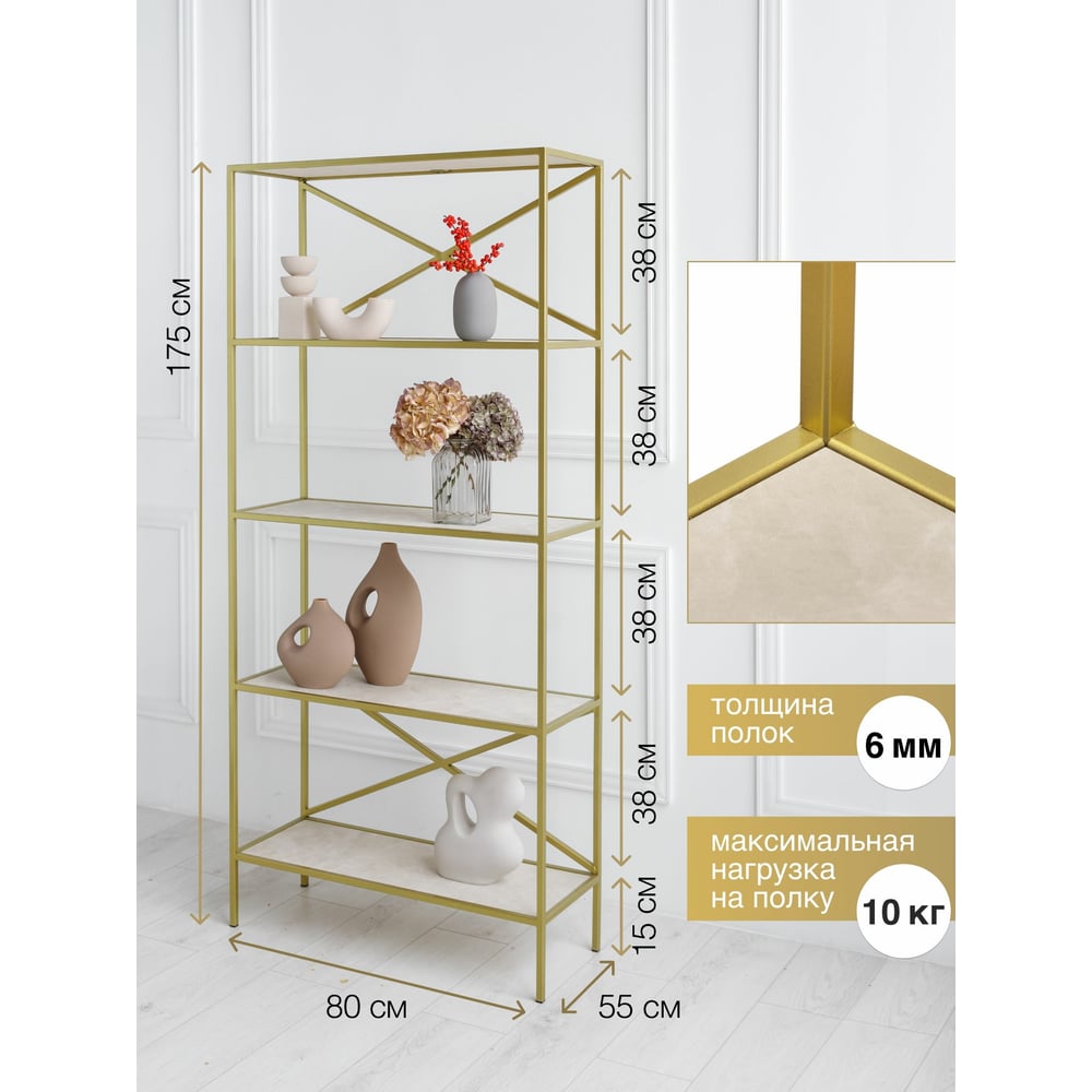 Стеллаж GreenWeen KARIN-800 золотой, керамика слоновая кость, 1750x800x300 GW-KARIN-800-G-KI
