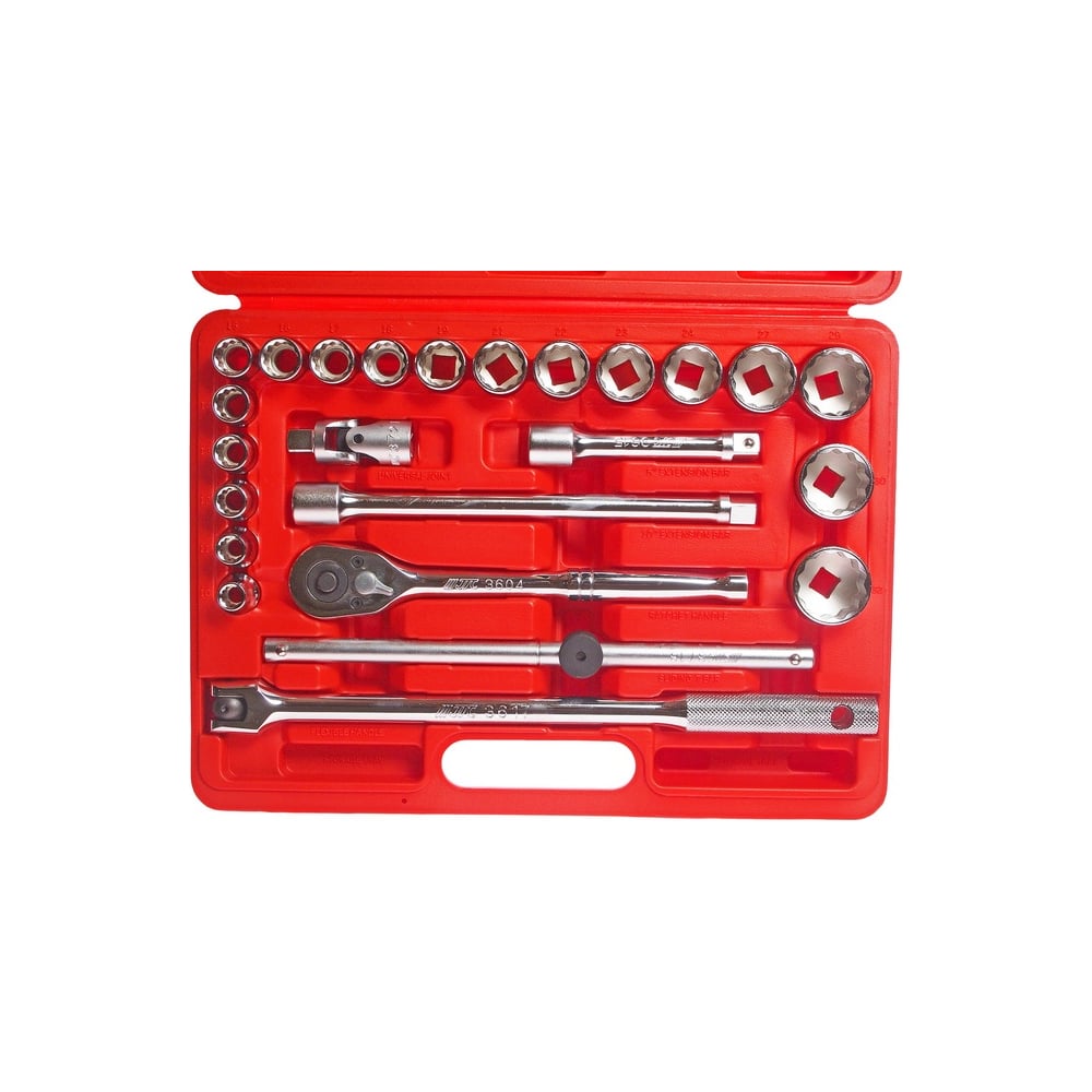 Набор двенадцатигранных торцевых головок 1/2" 10-32мм в кейсе 24шт JTC-T424B