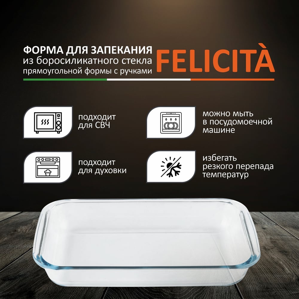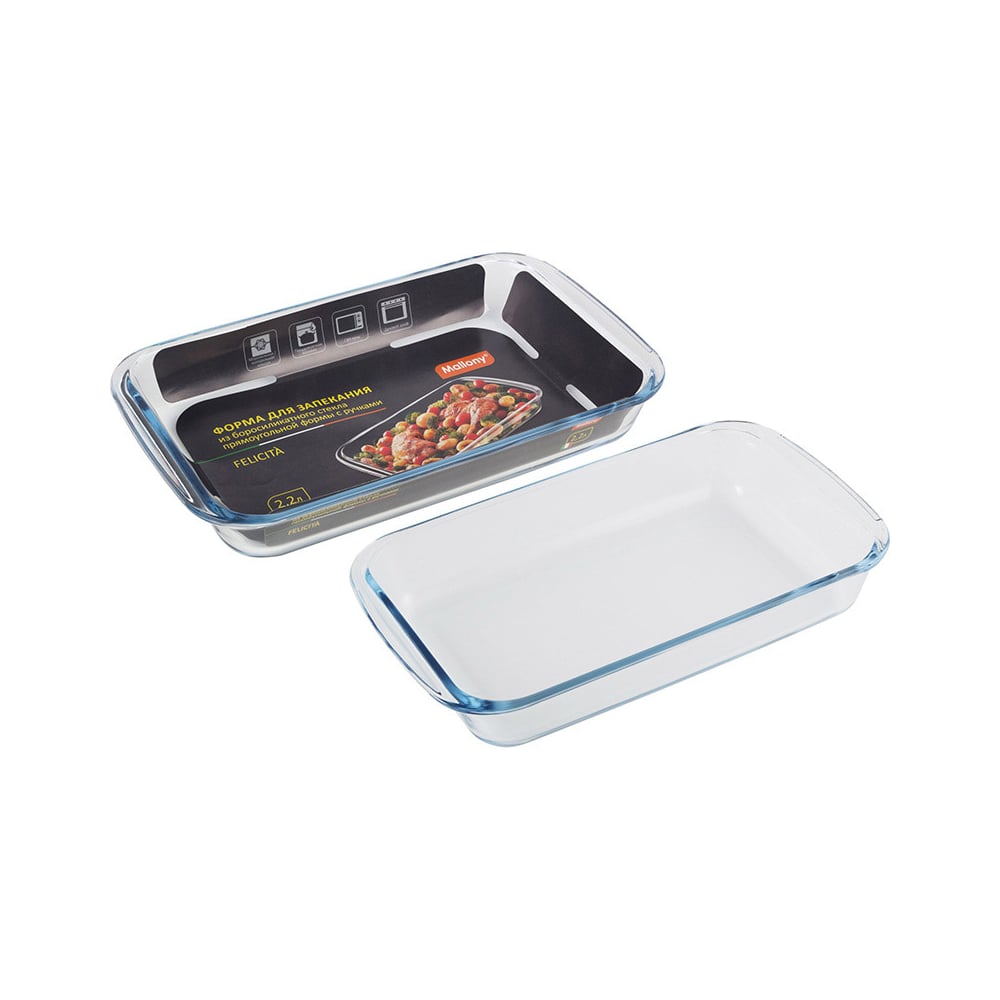 Форма для запекания Mallony Felicita объем 2.2 л из боросиликатного стекла прямоугольная форма с ручками 007181