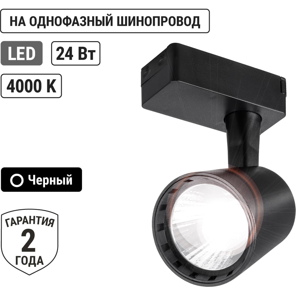 Трековый однофазный светильник TDM ELECTRIC LED TRL-01-024-NB 24 Вт, 24, 4000 К, 80 Ra, черный SQ0369-0009