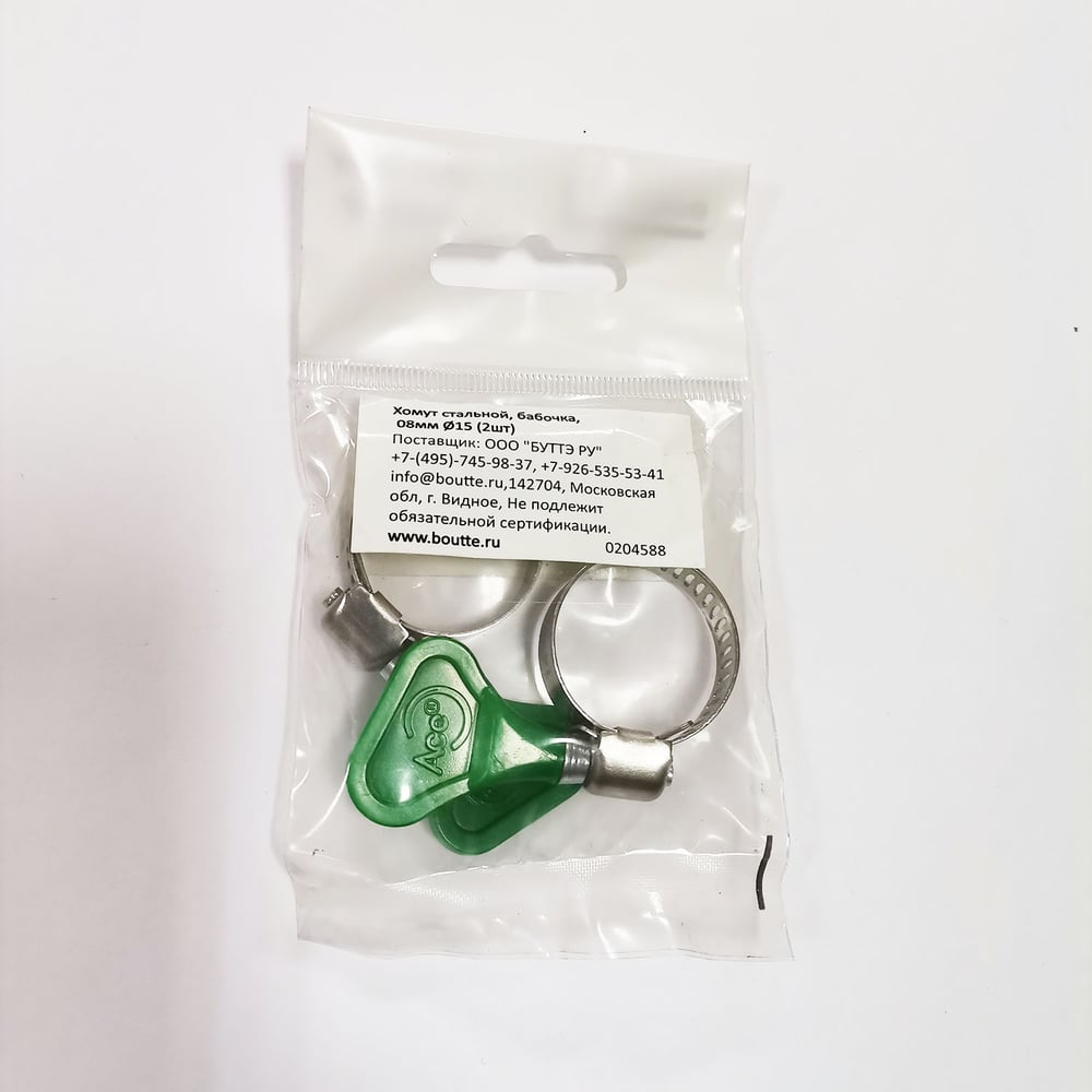 Стальной хомут бабочка Boutte 15 мм, ширина 8 мм, 2 шт. 0204588