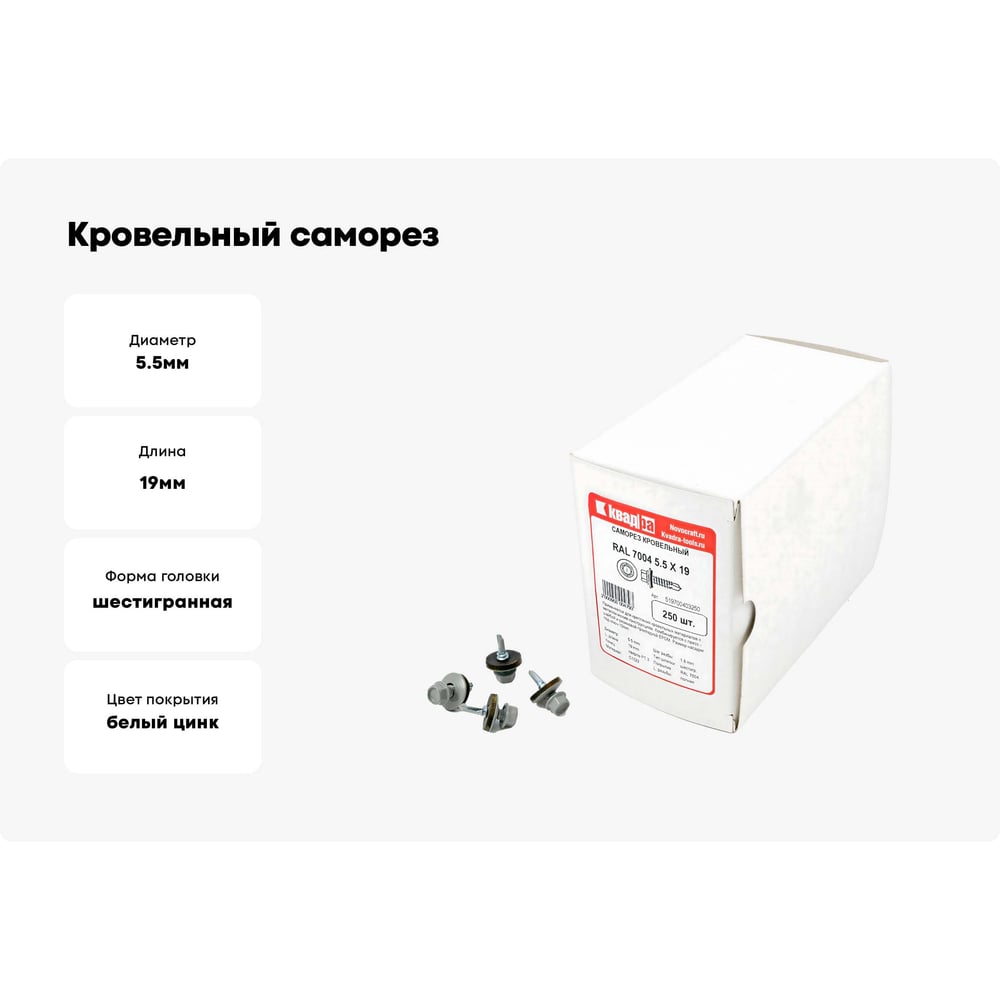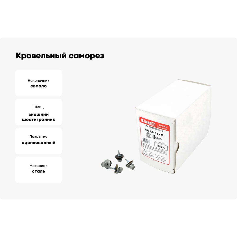 Кровельный саморез КВАДРА 5.5x19 RAL 7004 светло-серый 250 шт. 519700403250