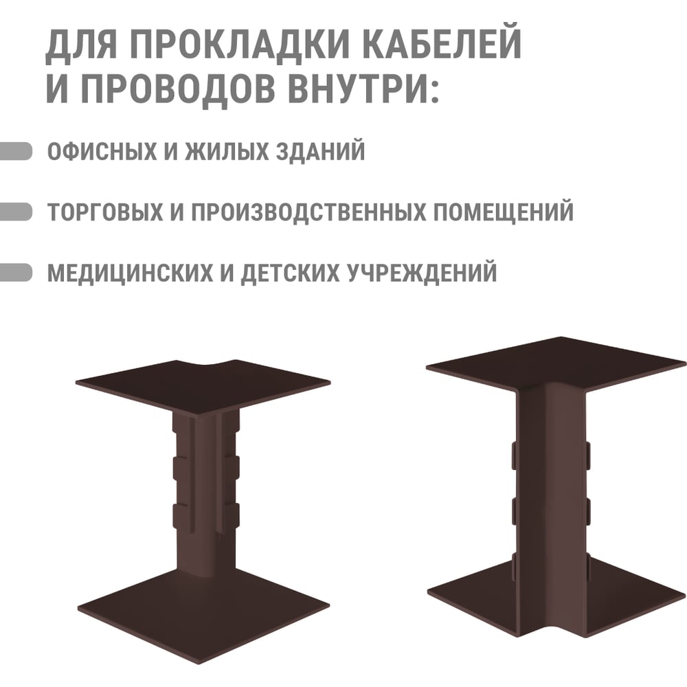 Высота 60 мм Длина 200 мм Материал ПВХ Ширина 100 мм Цвет бук Тип внутренний угол Вес нетто 0.12 кг Степень защиты IP40 Количество в упаковке 2 шт Температура эксплуатации от -40 до +70 °С Цвет RAL 8022 Палитра коричневый Температура монтажа от -15 до +60 °С Климатическое исполнение УХЛ1 Размер 100х60 мм Количество вводов 2 шт Высота кабель-канала 60 мм Ширина кабель-канала 100 мм Количество отсеков 1 шт Изменяемый угол нет