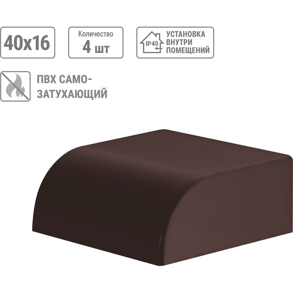 Высота 16 мм Длина 80 мм Материал ПВХ Ширина 40 мм Цвет бук Вес нетто 0.036 кг Степень защиты IP40 Количество в упаковке 4 шт Температура эксплуатации от -40 до +70 °С Цвет RAL 8022 Температура монтажа от -15 до +60 °С Климатическое исполнение УХЛ1 Высота кабель-канала 16 мм Ширина кабель-канала 40 мм