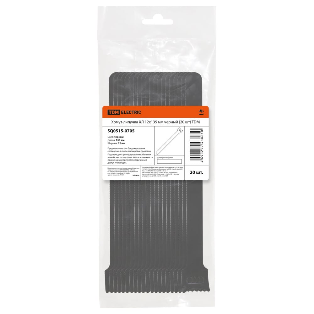 Хомуты для проводов (липучка) TDM ELECTRIC ХЛ 12х135 мм черный упаковка 20 штук SQ0515-0705