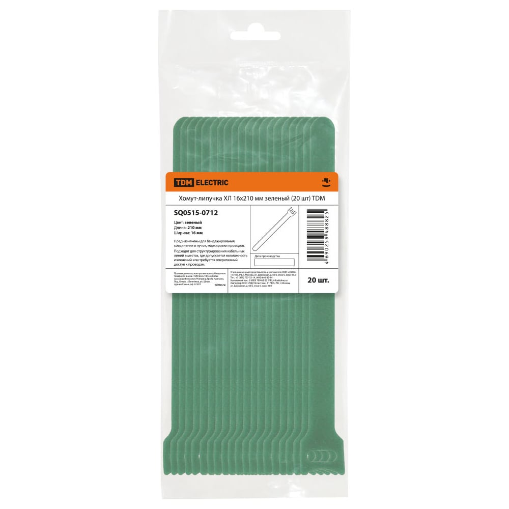 Хомут-липучка TDM ELECTRIC ХЛ 16x210 мм, зеленый, 20 шт. SQ0515-0712