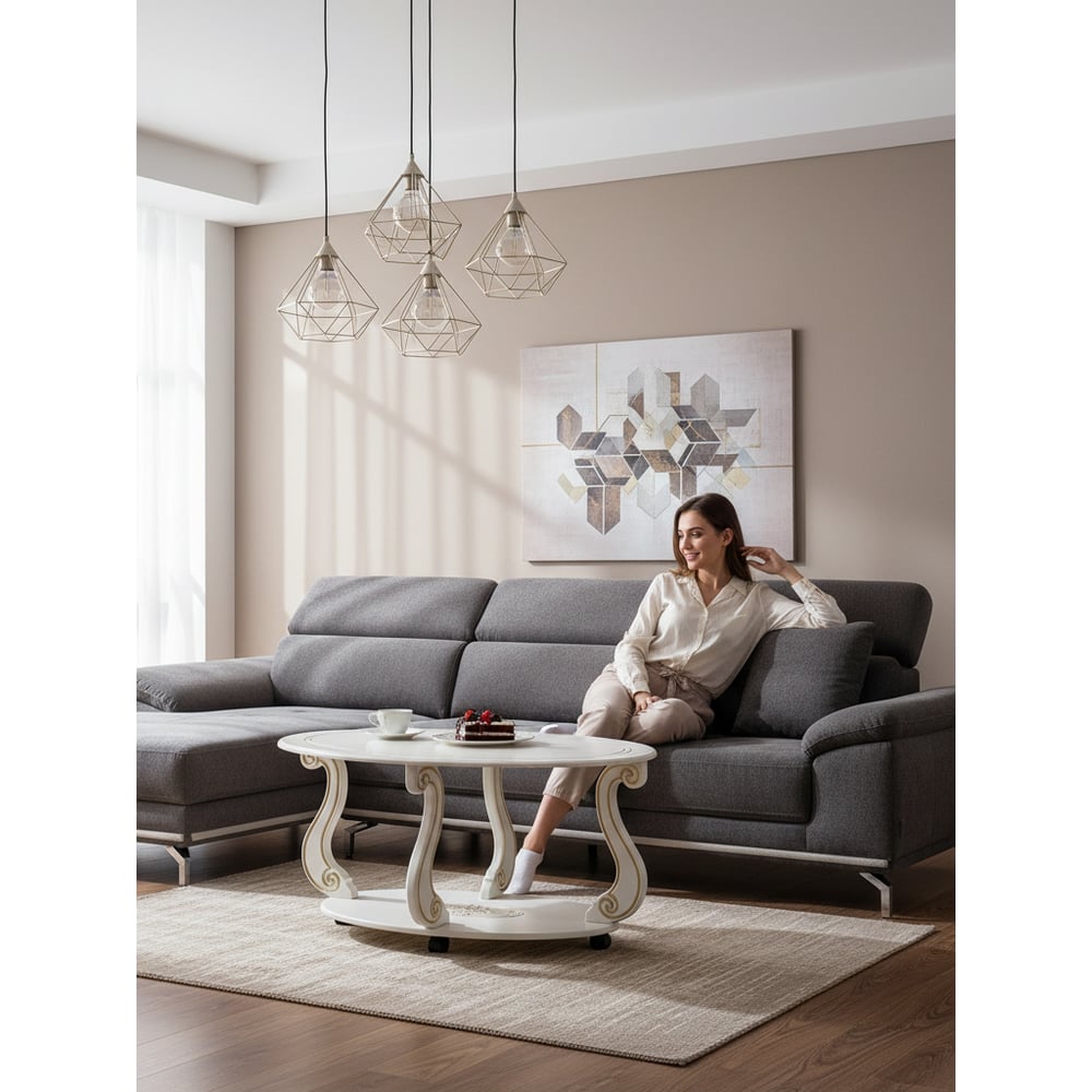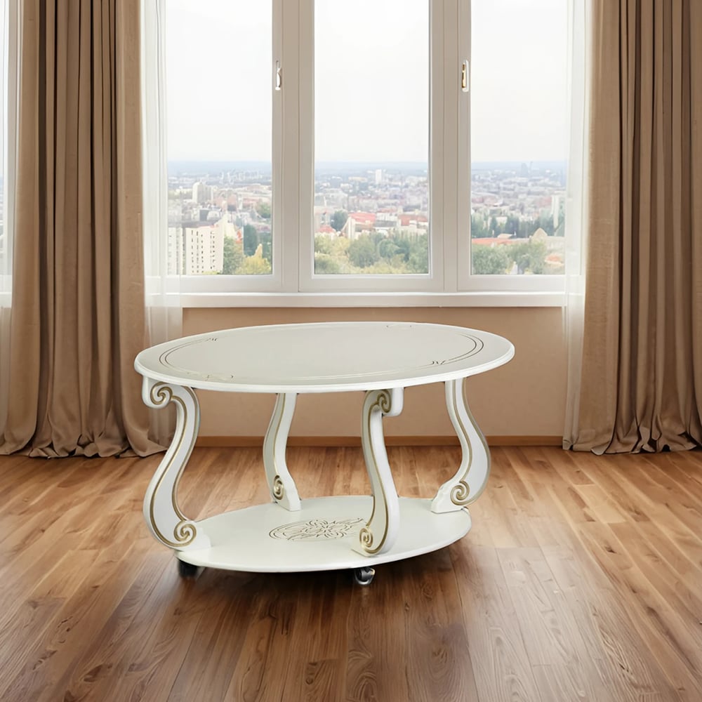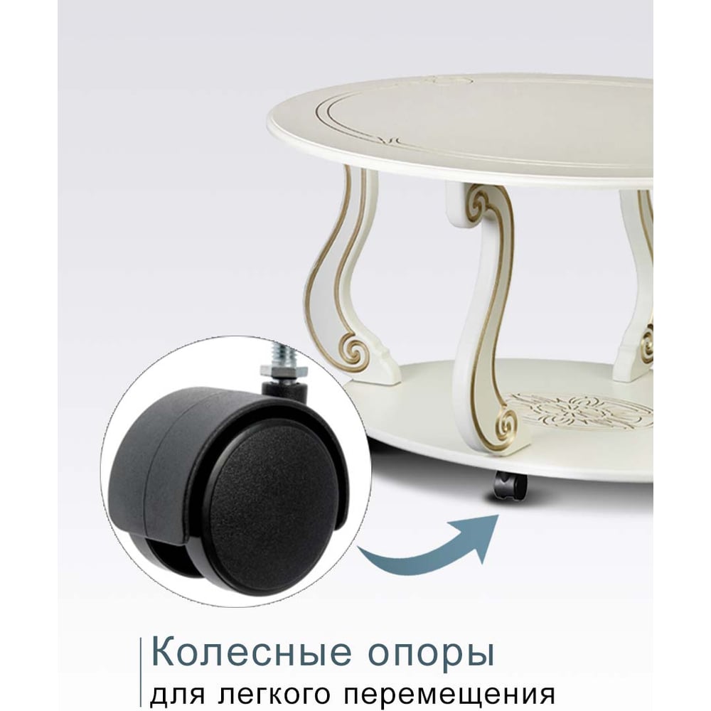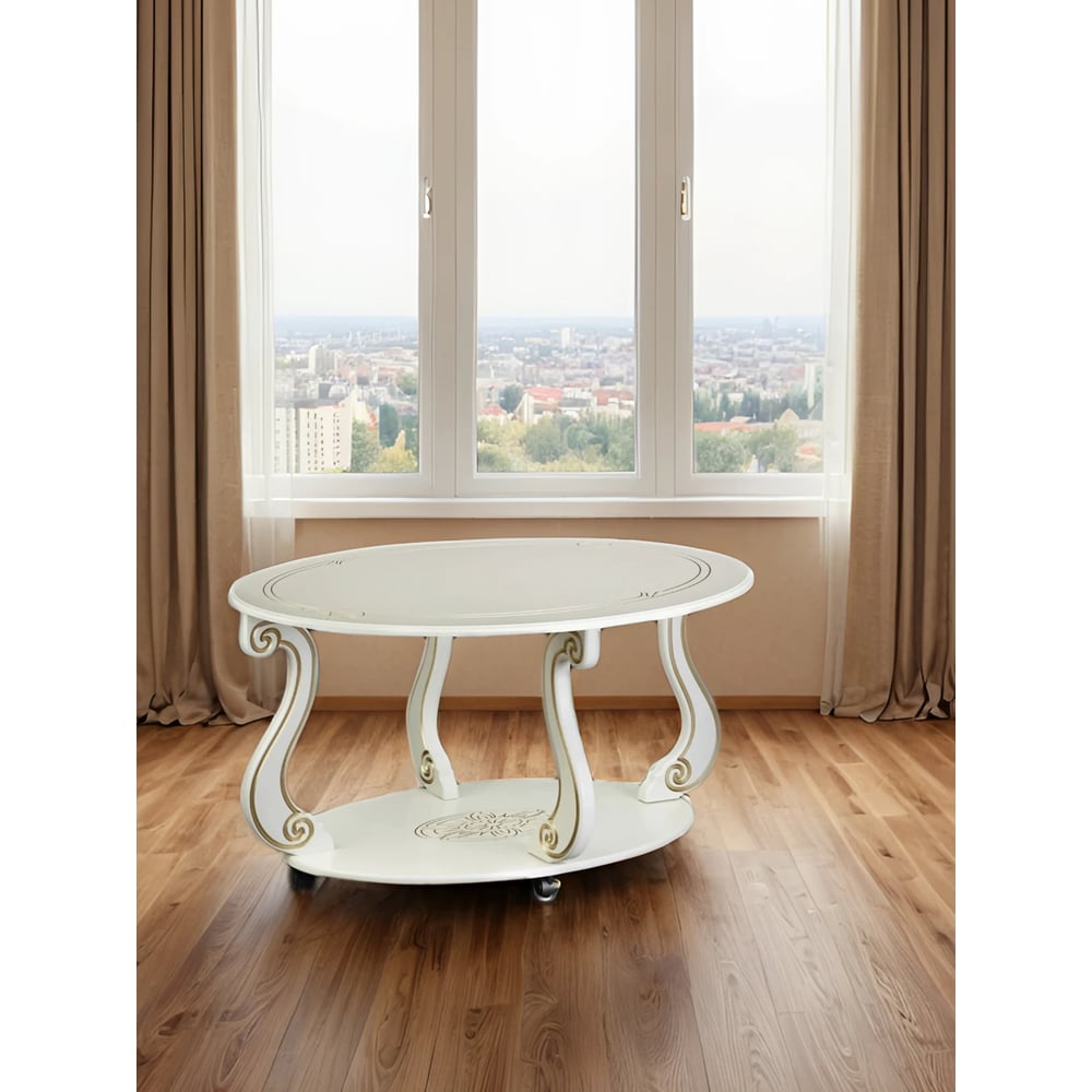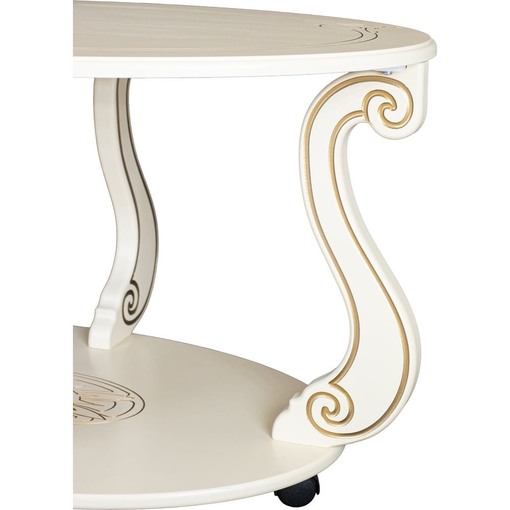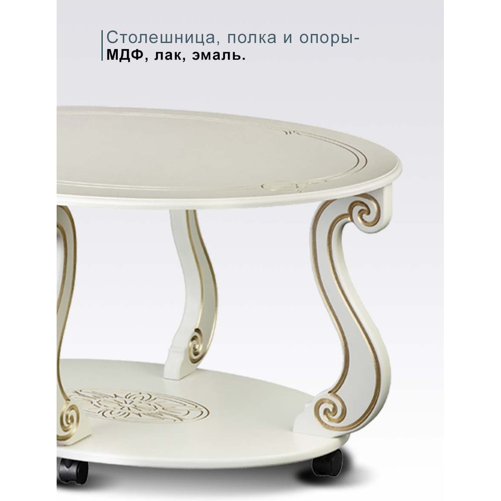 Журнальный стол Мебелик Овация М на колесах, слоновая кость, золото 00 6751