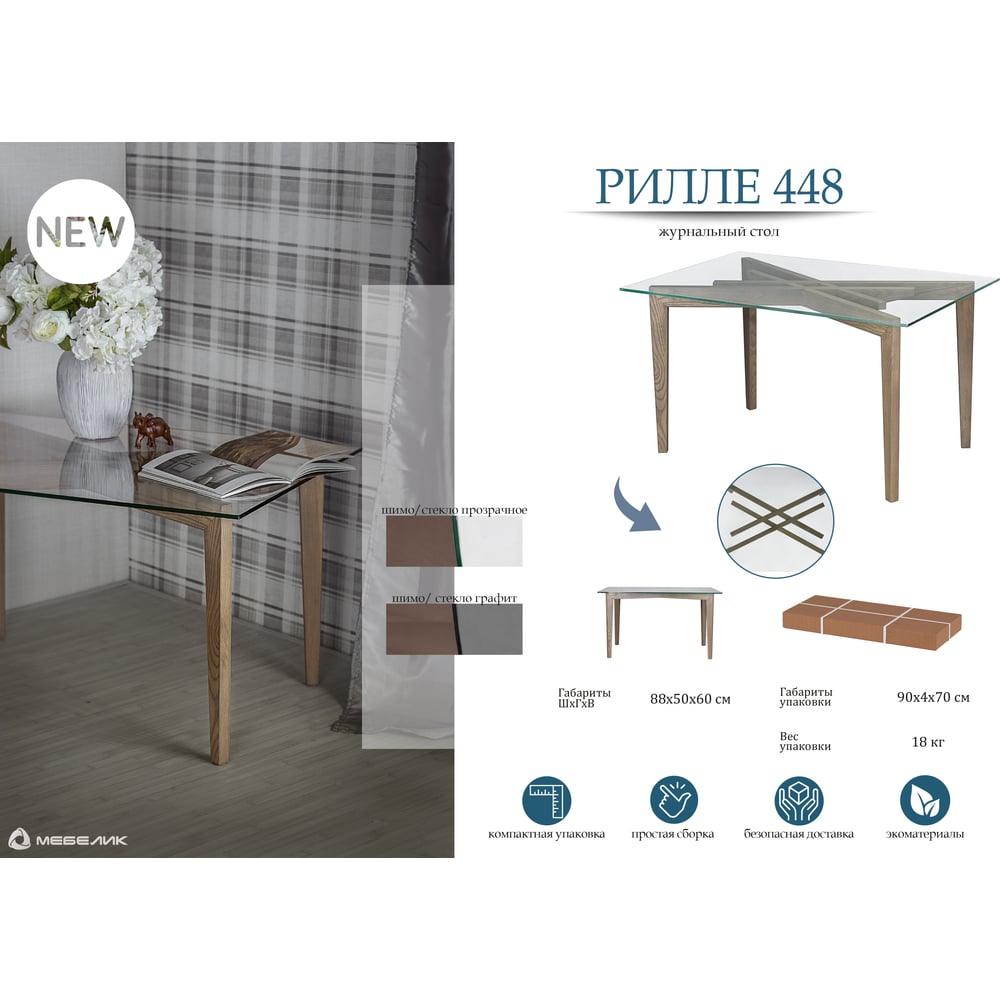 Стол журнальный Мебелик Рилле 448 шимо/ графит 00 6117