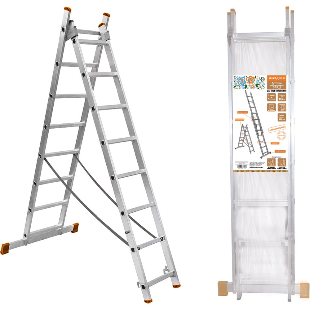 Алюминиевая двухсекционная лестница TDM ELECTRIC Народная ЛА2x7 высота 2880 мм SQ1028-0201