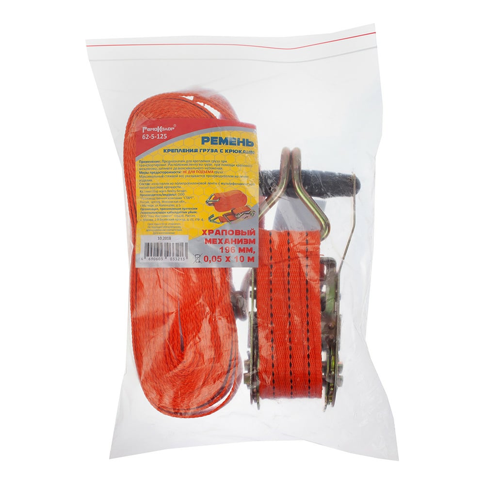 Ремень крепления груза РемоКолор с крюками, с храповым механизмом 195 мм, 0,05x10 м 62-5-125