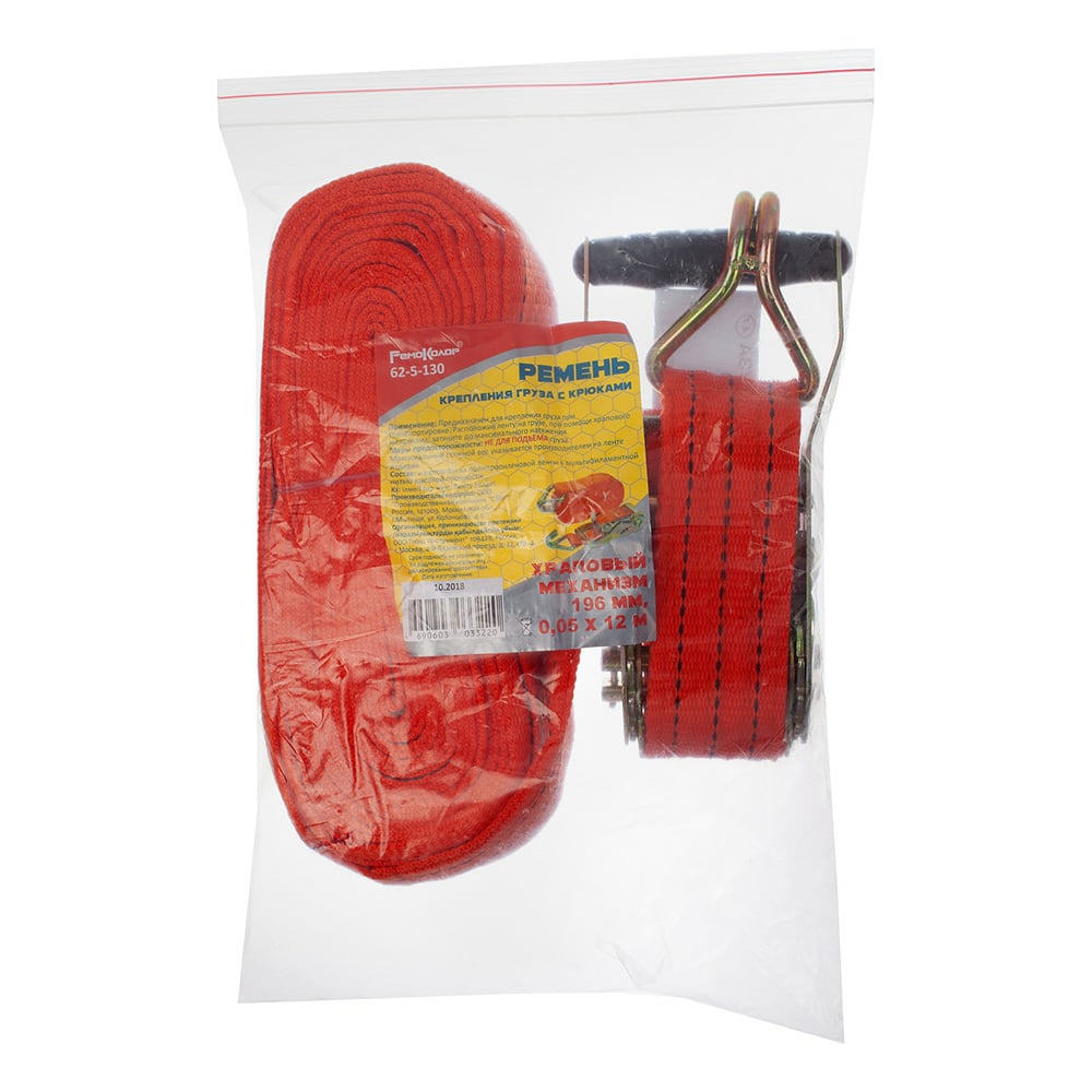 Ремень крепления груза РемоКолор с крюками, с храповым механизмом 195 мм, 0,05x12 м 62-5-130