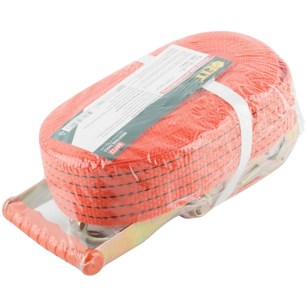 Ремень для крепления груза FIT храповый механизм 196 мм, лента 50 мм x 10 м, 2000/4000 кг 64922