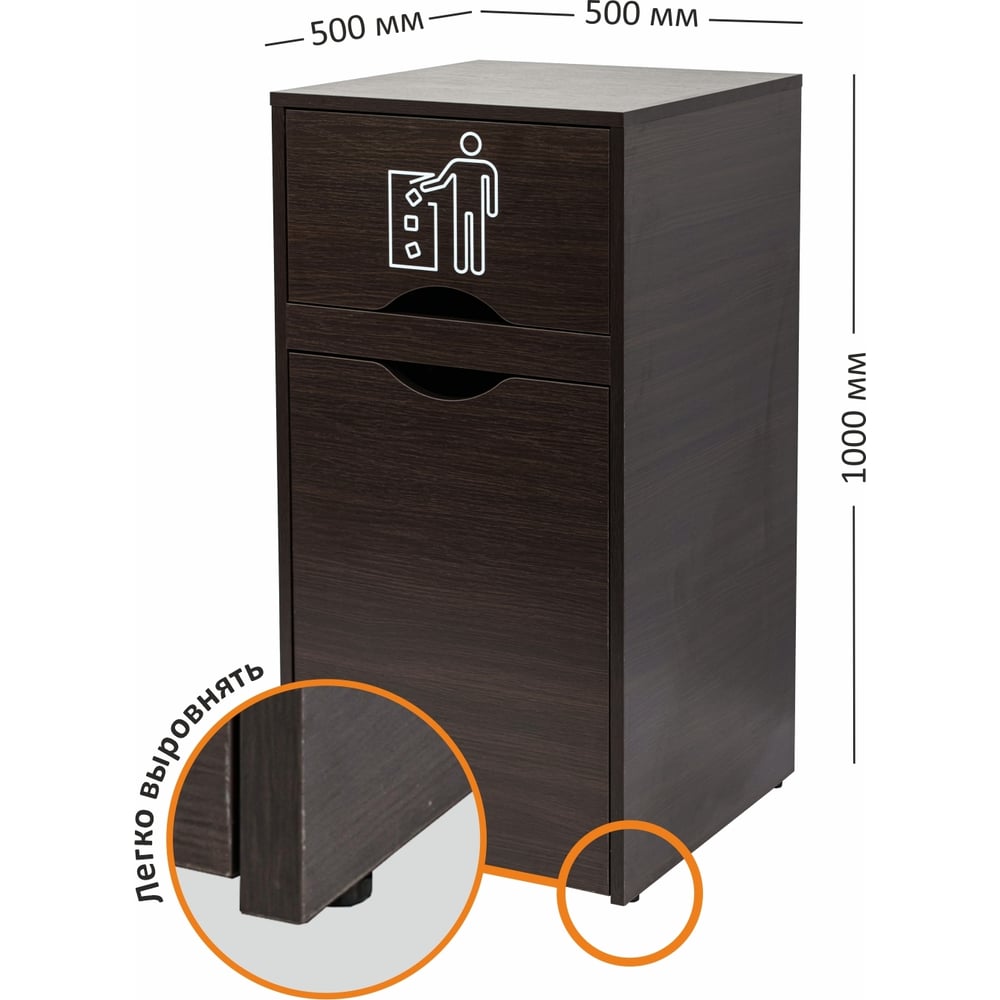 Высота 1000 мм Длина 500 мм Материал ЛДСП Объем 120 л Ширина 500 мм Цвет венге Вес нетто 31 кг Встраиваемый да С крышкой есть С педалью нет С ручкой нет С колесиками да Форма бака квадратная Морозоустойчивый нет