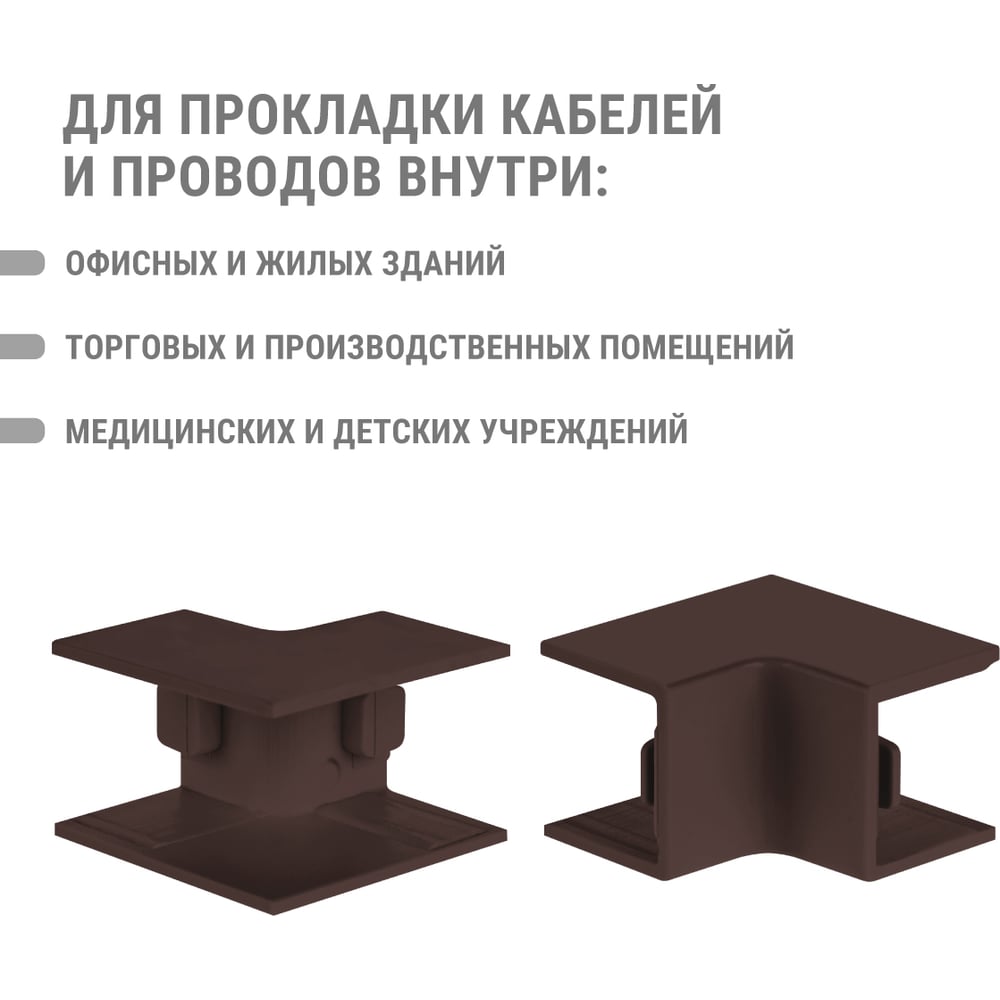 Высота 16 мм Длина 32 мм Материал ПВХ Ширина 16 мм Цвет бук Тип внутренний угол Вес нетто 0.022 кг Степень защиты IP40 Количество в упаковке 4 шт Температура эксплуатации от -40 до +70 °С Цвет RAL 8022 Палитра коричневый Температура монтажа от -15 до +60 °С Климатическое исполнение УХЛ1 Размер 16х16 мм Количество вводов 2 шт Высота кабель-канала 16 мм Ширина кабель-канала 16 мм Количество отсеков 1 шт Изменяемый угол нет