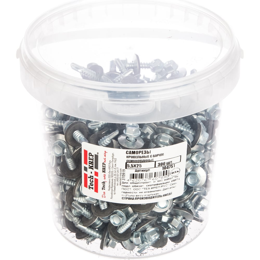 Кровельный саморез Tech-Krep КР ZP сверло 5,5х25 300 шт, ведро 104751
