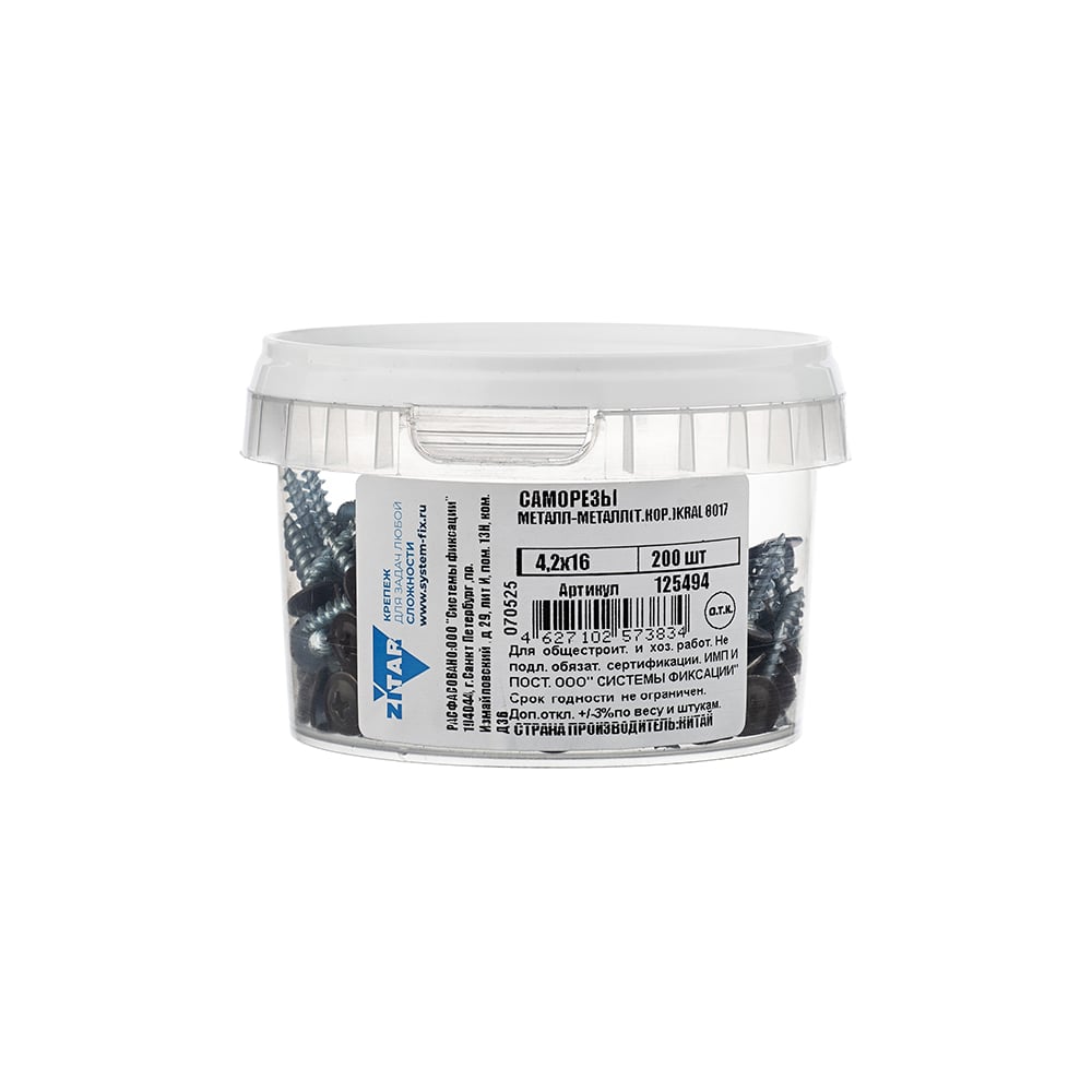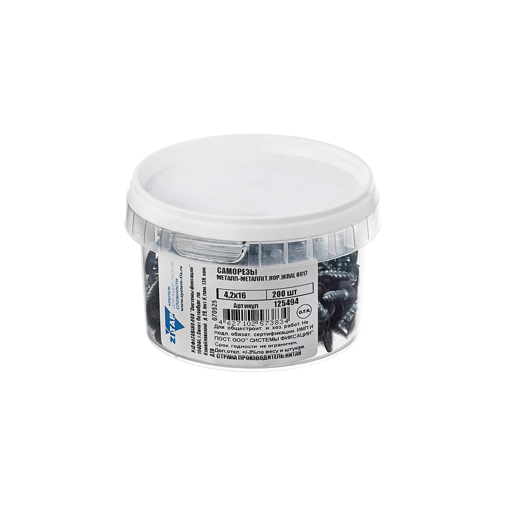 Саморез ШСММ 4,2x16 мм, темно-коричневый, KP RAL 8017, 200 шт в малом ведре Zitar 125494