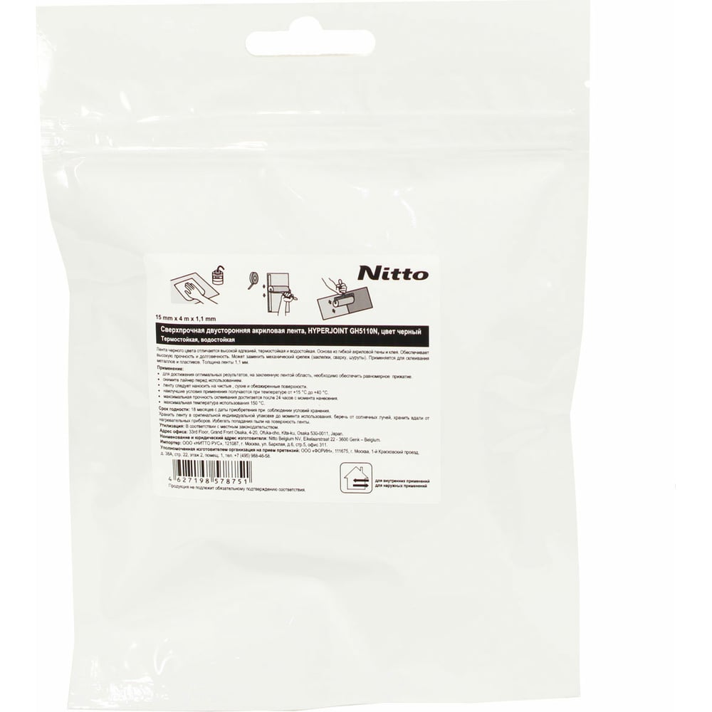 Сверхпрочная двусторонняя акриловая лента Nitto HYPERJOINT GH5110N, 15 мм х 4 м, цвет черный 4627198578751