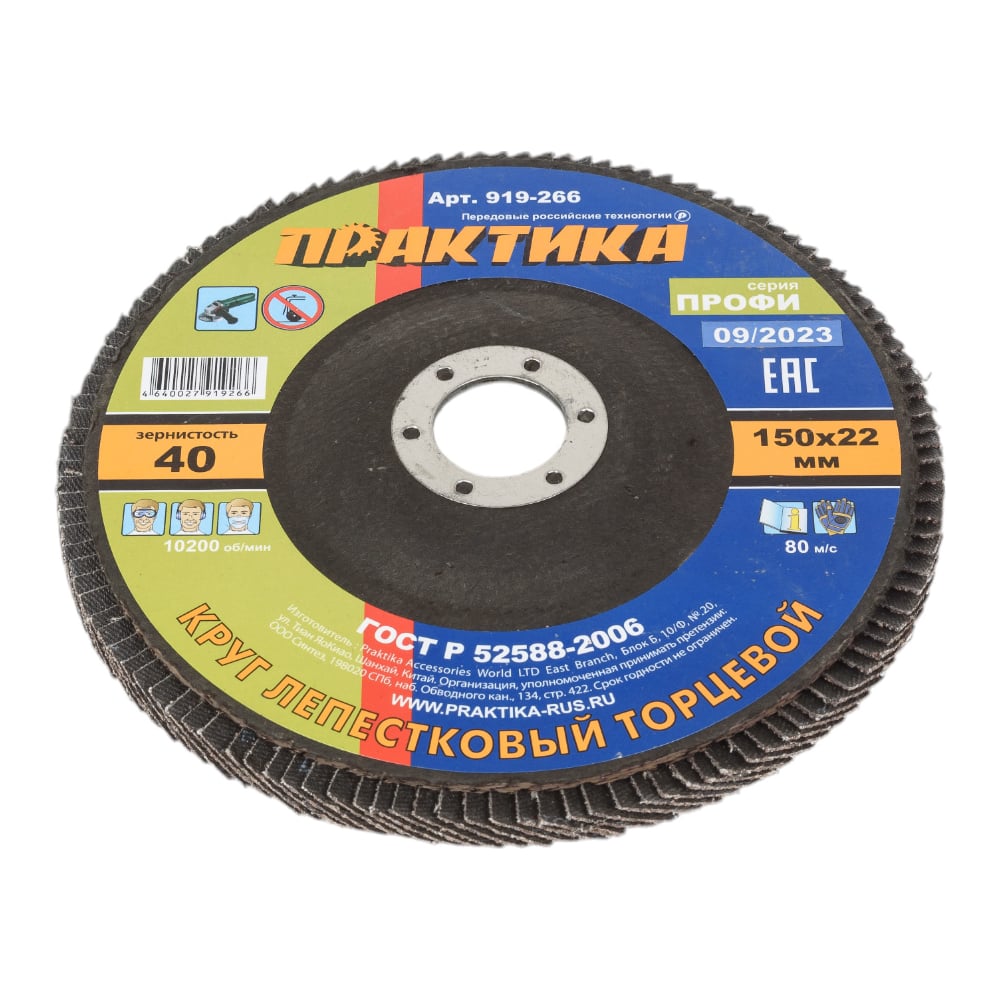 Круг лепестковый торцевой 150 х 22 мм Р 40, ПРАКТИКА 919-266