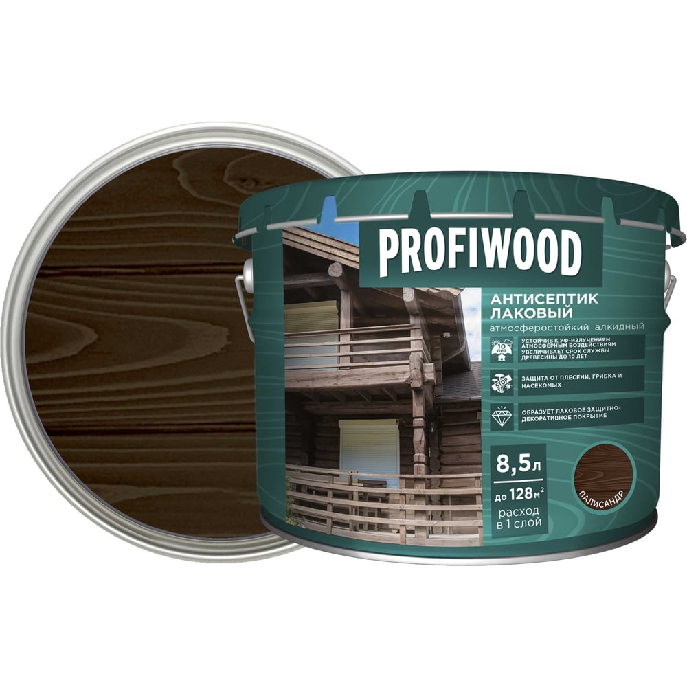 Алкидный антисептик PROFIWOOD (лаковый; тонирующий; атмосферостойкий; палисандр; 8.5 л; 8 кг) 67031