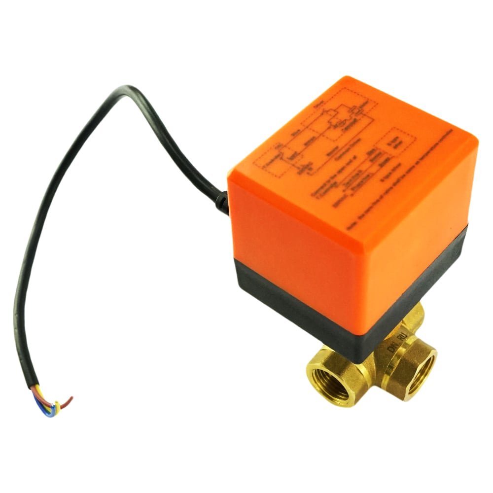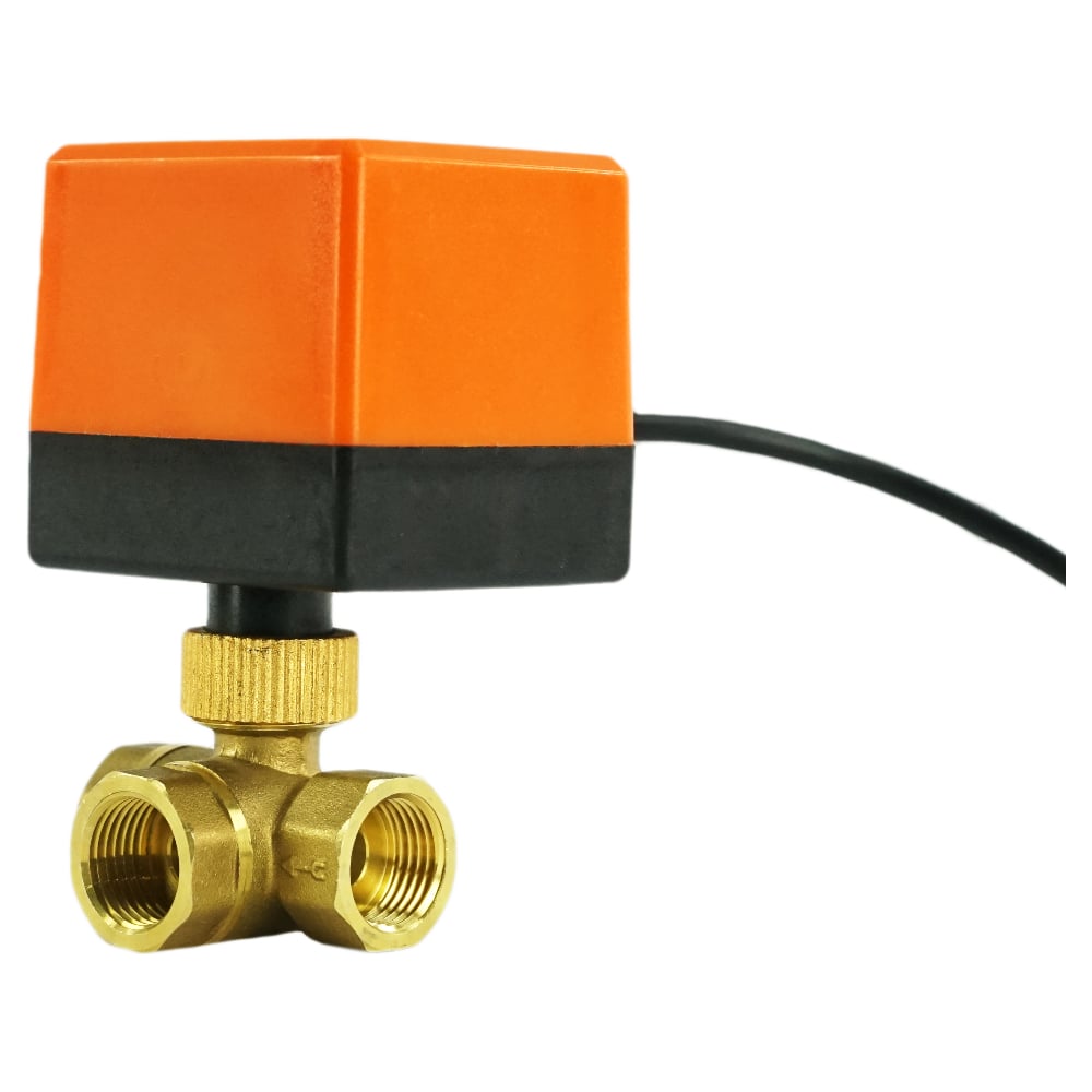 Кран DN.ru латунный 3-ходовой T-тип RP.BRASS.120.MM.015 Ду15 Ру16, электропривод 220В D160-00113