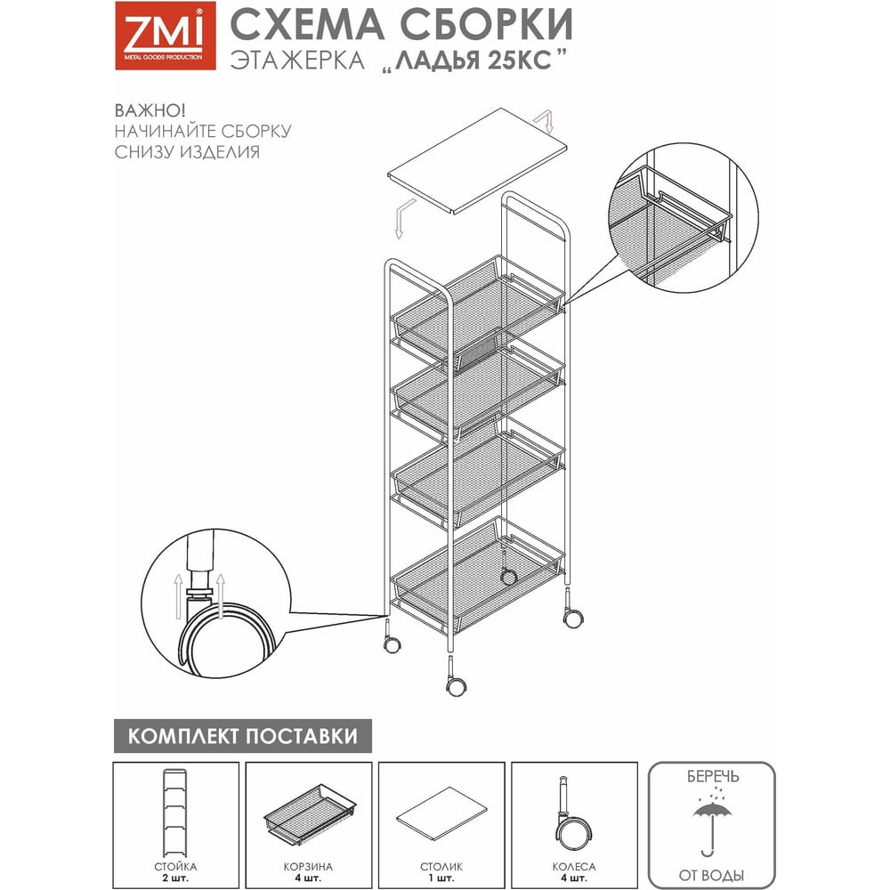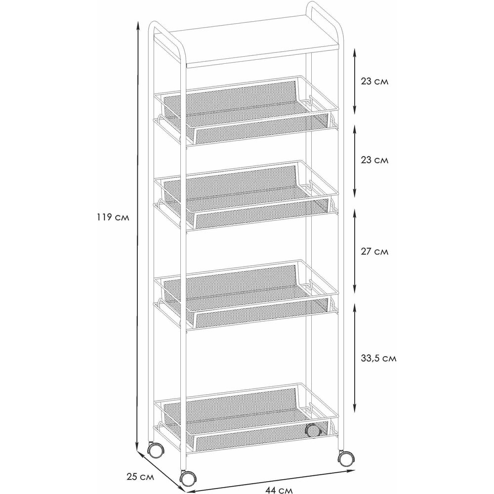 Этажерка / Стеллаж для хранения ЗМИ Ладья 25КС / 4 полки / с колёсами / цвет белый Э 443 Б Э 443 Б