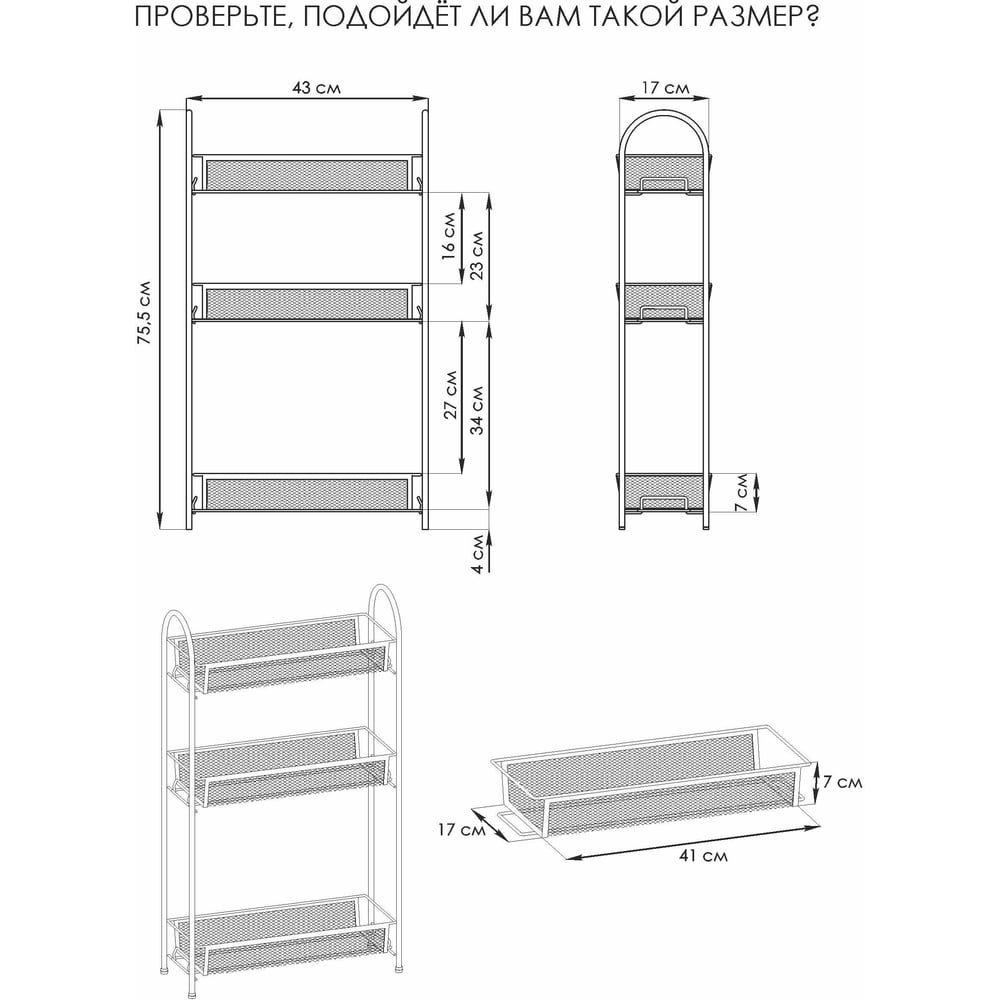 | Количество полок | 3 шт |