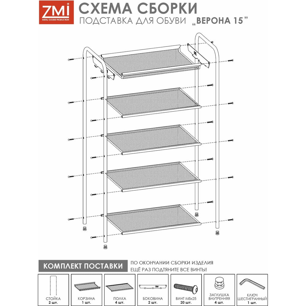 Обувница-этажерка для обуви ЗМИ Верона 15 5 полок 8 пар обуви цвет белый ПДОВ15Б