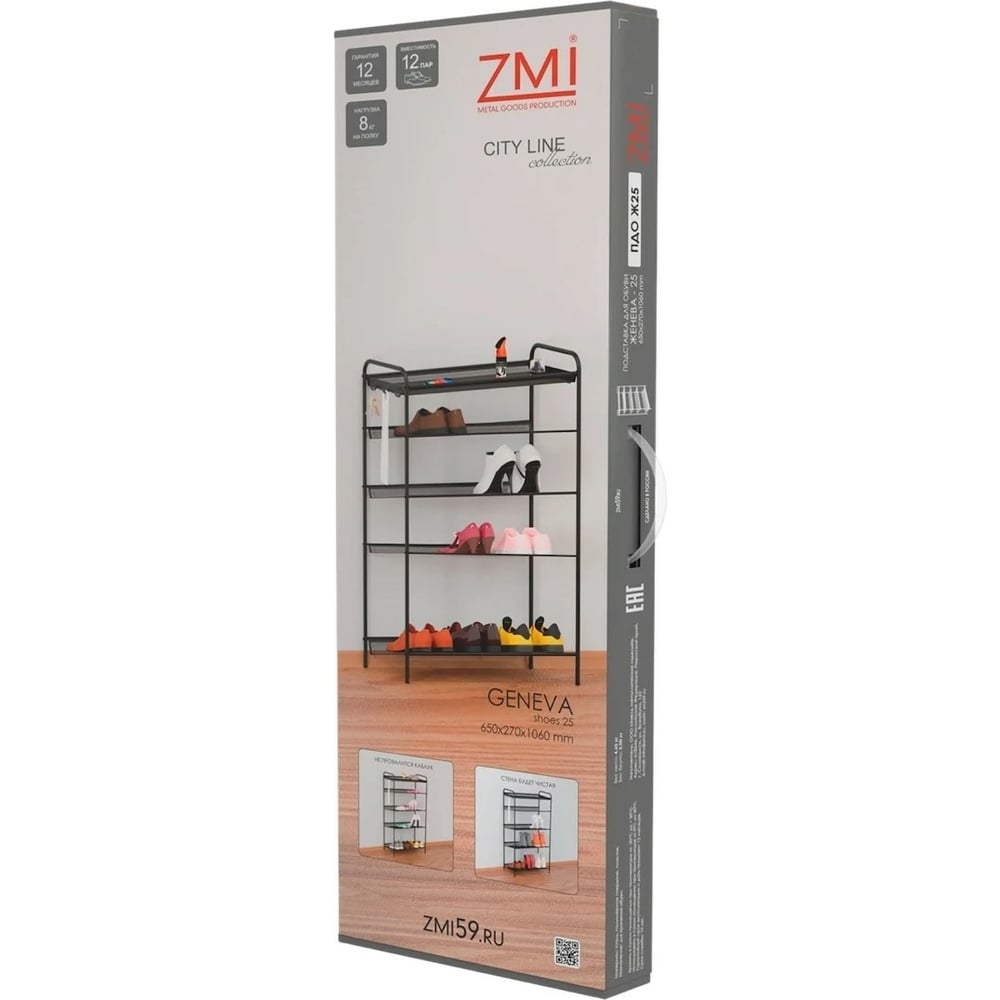 Обувница Этажерка для обуви ЗМИ 5-и полочная Женева 25 12 пар обуви Цвет белый ПДО Ж25 Б ПДО Ж25 Б